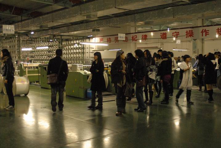2008年11月21日,我院服装艺术设计、纺织品艺术设计、工业造型设计、视觉传达艺术设计、环境艺术设计系和韩国详明大学、荷兰鹿特丹大学、韩国京畿大学三所学校的师生一行88人在完成20日一天的讲课交流之后,一起来到浙江海宁经编产业园区进行考察。要求通过此次实地考察对经编面料有更深入的了解。经编产业园区的领导们给了我们热情的接待。经编产品开发中心的参观对经编产品的结构、品种、用途和发展有了直观了解,接着走进的经编厂的生产车间,对经编面料的每一个生产环节更增添了兴趣和更深刻的了解,师生们仔细观察生产的每个环节拍摄照片收集资料,为后面的设计做好充分的准备,同时也就经编面料的生产模式、技术研发、供应模式等相关问题做了询问,接待人员一一做了详细解答。国内外学生感叹不尽,纷纷议论还没见过这样大的经编厂。