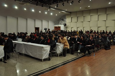 的招牌专业,多年来保持就业率稳步上升。我们享受着一种皇帝的女儿不愁嫁的优越感。然而当今在金融危机的大环境下,不管是国内还是国外的高校就业率都开始不容客观。我们本次推介会的模式是受日本文化学院的启发开展的。希望通过对学生的作品展示、展览从而更好地架起学生与企业之间的桥梁。