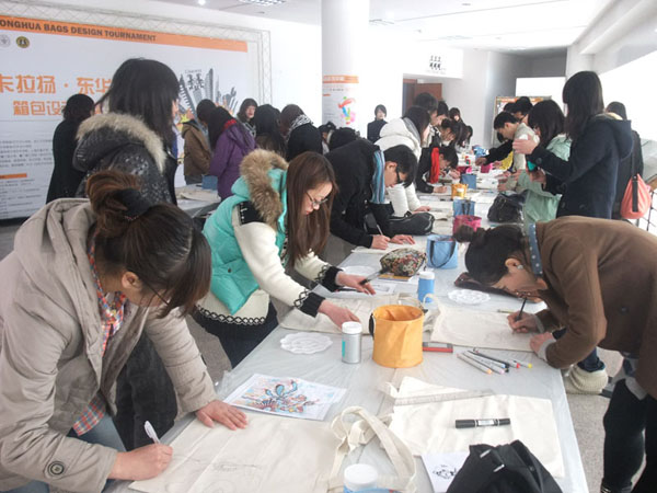 2011年3月16日,“卡拉扬—东华杯”箱包设计大赛的新闻发布会及环保袋现场彩绘活动在91club