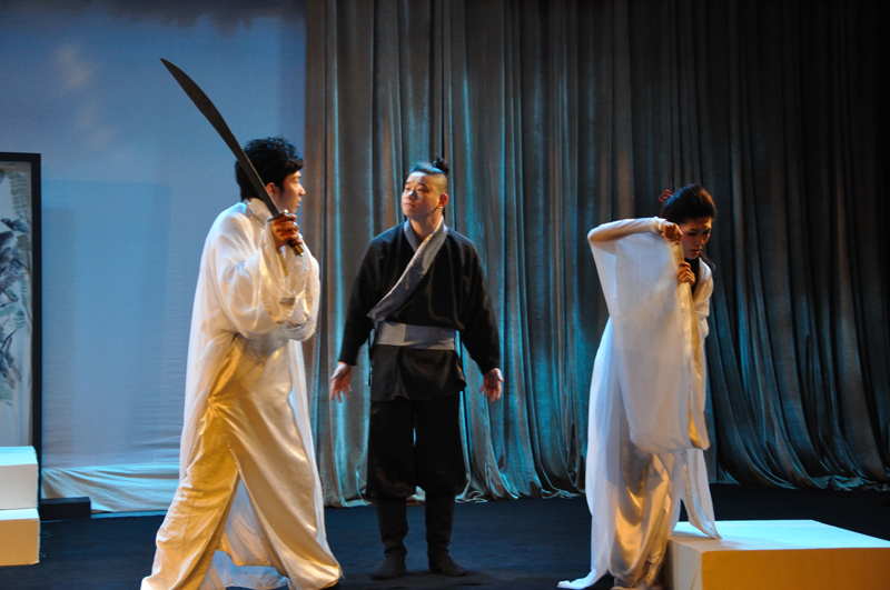 话剧《我爱桃花》是由表演系08级学生邓晴(饰演英子)、张亚男(饰演冯燕)、叶浏(饰演张晏)联袂,演绎了一段古今交错的爱情故事,探讨了在抽刀之后两个情人之间的种种可能性:冯燕自杀,还是把刀放回,一切重新开始......多种可能在古今的时空变换中交替,折射出从古到今人们永远也无法说清的情感问题。许多观众表示,该剧在好笑的同时也能引发深深的思索。