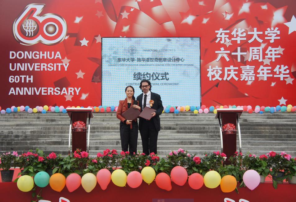 图2 服装•艺术设计学院院长李柯玲与施华洛世奇中国及香港销售发展总监HERMANN WINKLER签署续约协议