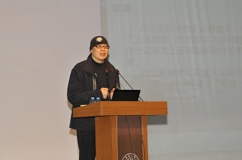 在正式报告之前,李柯玲院长首先对国内艺术设计界的老前辈,也是我们学院的老朋友——陈汗青教授的到来表示热烈的欢迎,并做了详细的介绍,包括工作经历、专业学术地位及学术成果等。陈汗青教授原是武汉理工大学艺术与设计学院院长,现任复旦大学视觉艺术学院博导,副校长,是我国工业设计工程硕士领域先行者,学术带头人。同时还担任了中国工业设计协会常务理事、中国建设环境艺术委员会副会长,教育部高校工业设计专业指导委员会委员等职务。