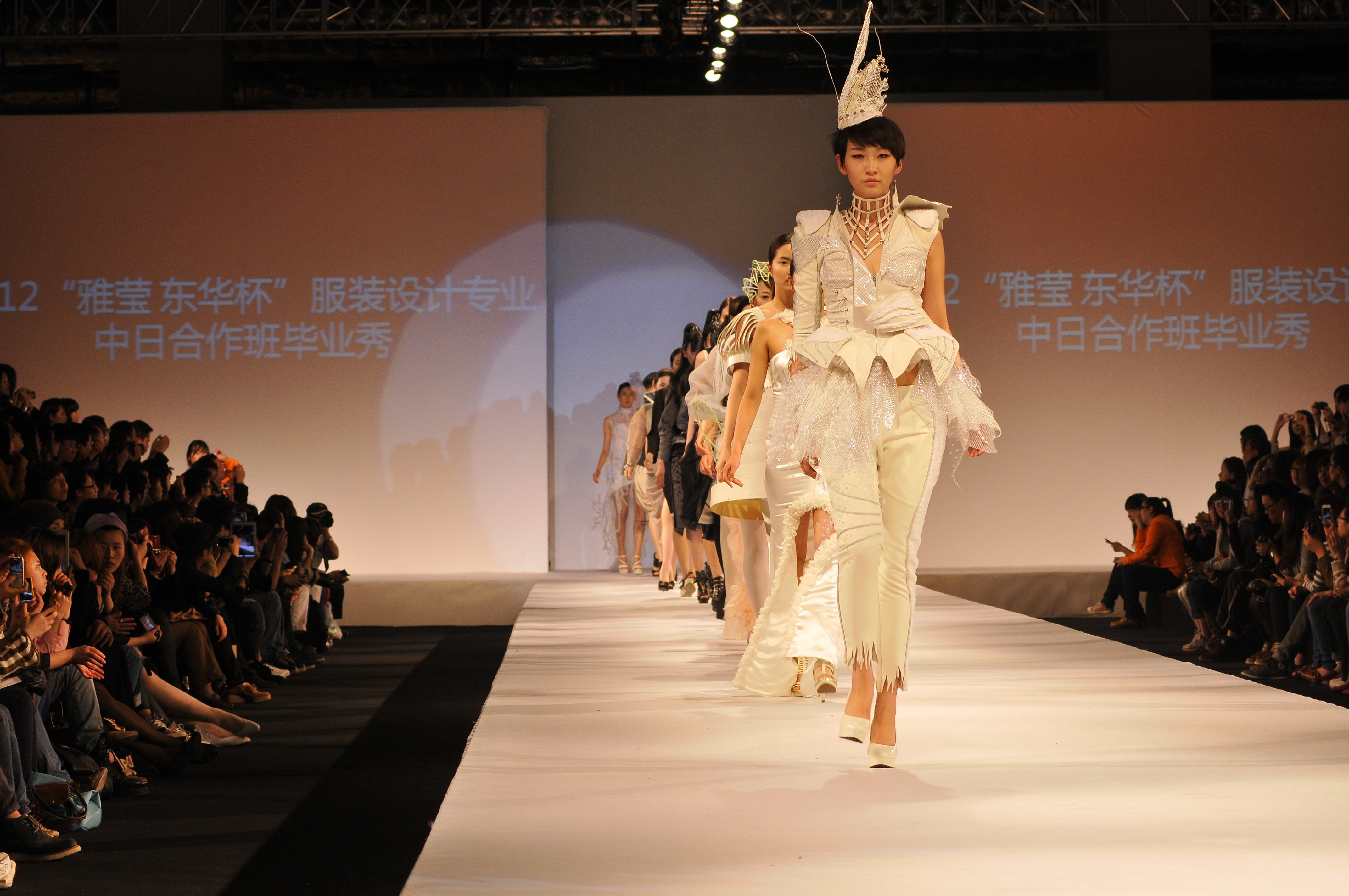 2012年4月19日晚19:30整,上海世贸商城,在大众的翘首期盼中,“雅莹·东华杯”中日合作班毕业生作品赛徐徐拉开了帷幕,本次秀场所展演的毕业设计作品是中日合作服装艺术设计专业学生留日期间由日本文化服装学院的老师指导完成,是中日合作班学生整个四年学习成果的一个总汇,其中包含了两个国家的两种文化,体现出91club 和日本文化服装学院合作办学的高质量和高水平。