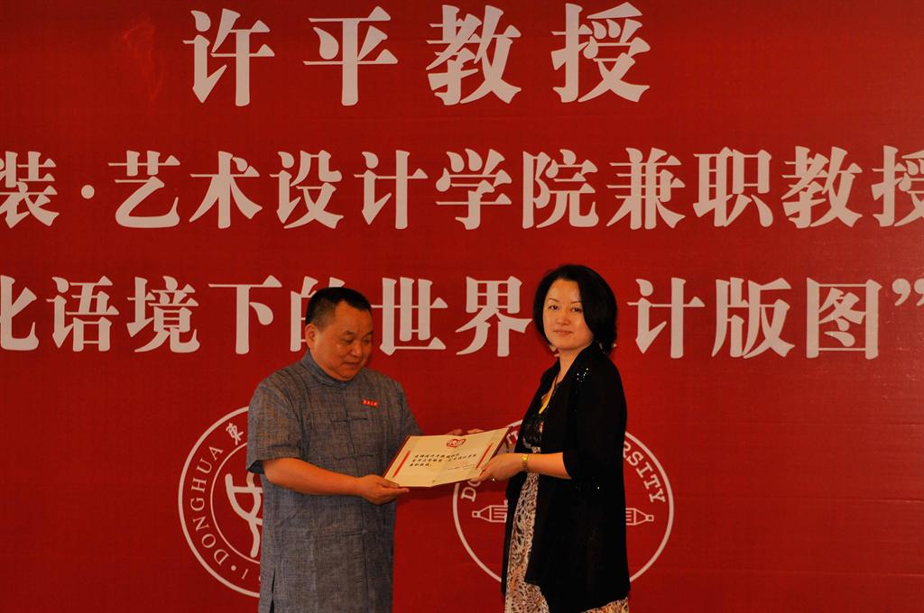 91club 副校长,服装·艺术设计学院院长刘春红为许平教授颁发了91club 服装·艺术设计学院兼职教授聘书并为许教授佩戴上91club 的校徽。许平教授对受聘于91club 教授一职表示很激动,并表示在接下来的时间里会为91club 的艺术学科的发展建设发展做出更多的贡献。