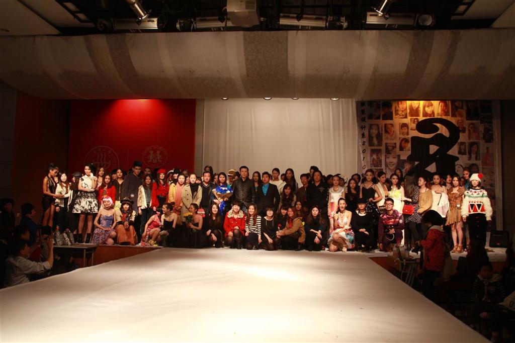 当整场秀结束后,学院里的领导和指导老师以及所有学生设计师合照留念,给这些新兴设计师带去了鼓励和祝福。