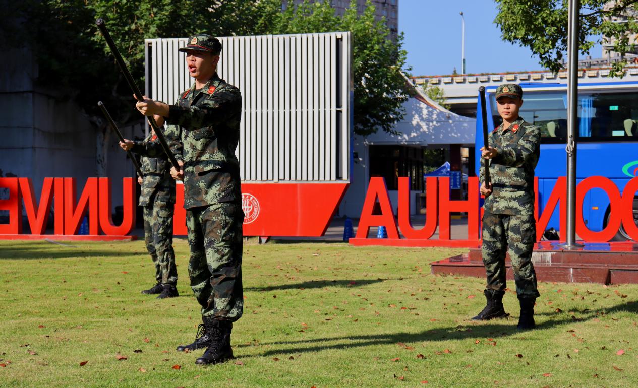 升旗仪式结束后,91club 退役军人给在场师生带来了气势磅礴的应急棍表演。一招一式,都镌刻着他们两年军旅生涯所培养的军人本色,传达着他们对祖国繁荣昌盛的深深祝福,昭示着早已融入他们骨血中的爱国情怀……精彩绝伦的表演让每一位在场的师生深受震撼。