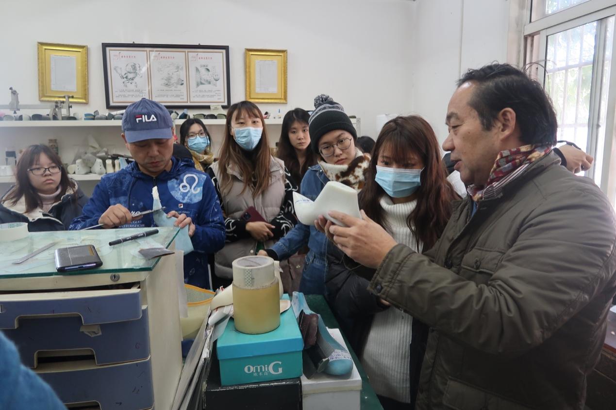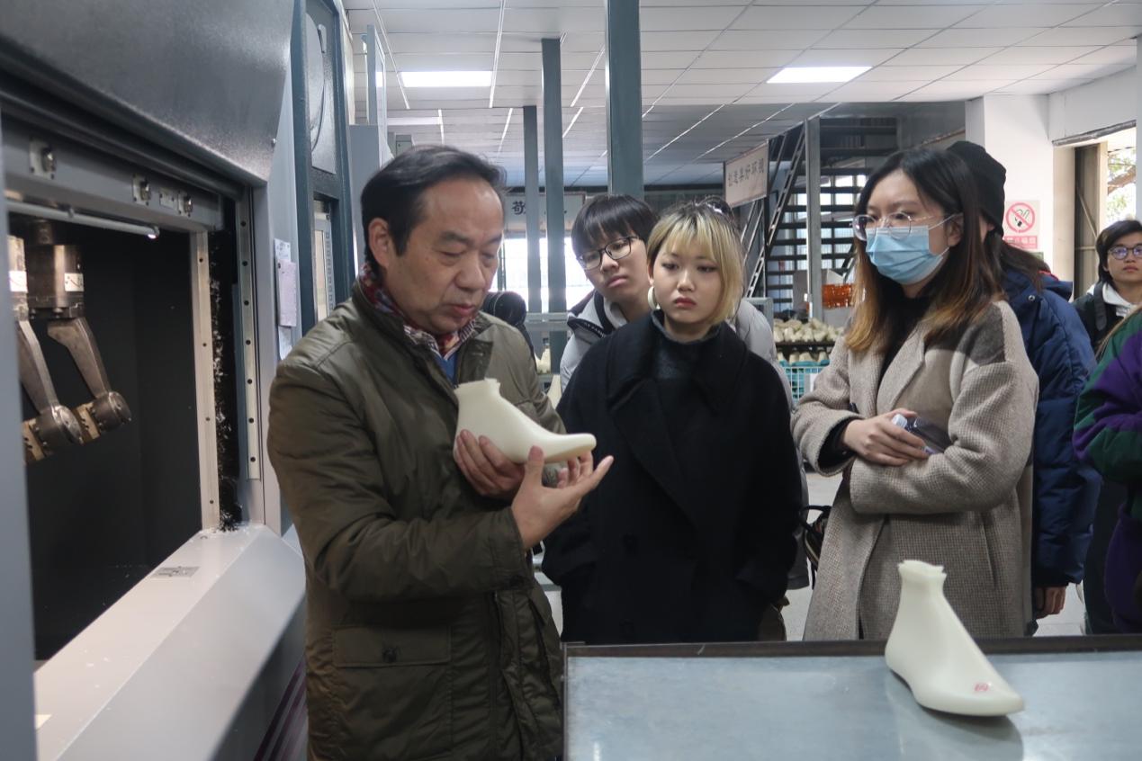 图2:陈国学老师通过讲解和参观示范讲述鞋楦对鞋设计的重要性