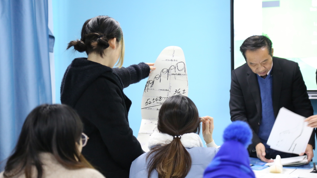 鞋楦的设计决定了一双鞋子的舒适度,它有别于服装设计,往往失之毫厘则差之千里。为了设计出符合中国人脚型规律的鞋楦,陈国学老师强调从脚型的测量到图纸的勾画,再到样板的切割过程,每一个步骤都需要做到精准无误。他还告诉我们特别是尖头高跟鞋,鞋头的翘度、鞋跟高度和鞋底弧度无一不需要严格的数据控制和对细枝末节的重视。所以在他设计的成千上万张样图上,随处可见脚的每个部位都标满了密密麻麻的数据。而每一个数据背后,都是愈发精益求精的态度坚守。国学老师说,制鞋的核心技术1)鞋楦的数据和脚型数据不同的原因;2)鞋楦标准化数据的重要性是实现现代化制鞋制造;3)鞋楦对现代化鞋的重要性是数字化和标准化。而陈老师也一直走在前沿,并带领大家一起去探索,将理论研究成熟输出成标准,并推将他参与起草的鞋楦标准推向世界舞台。