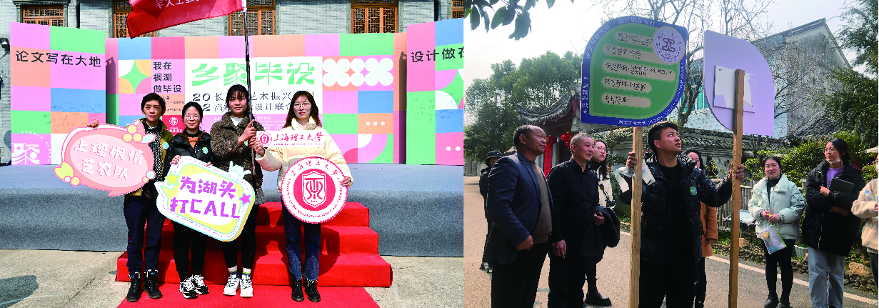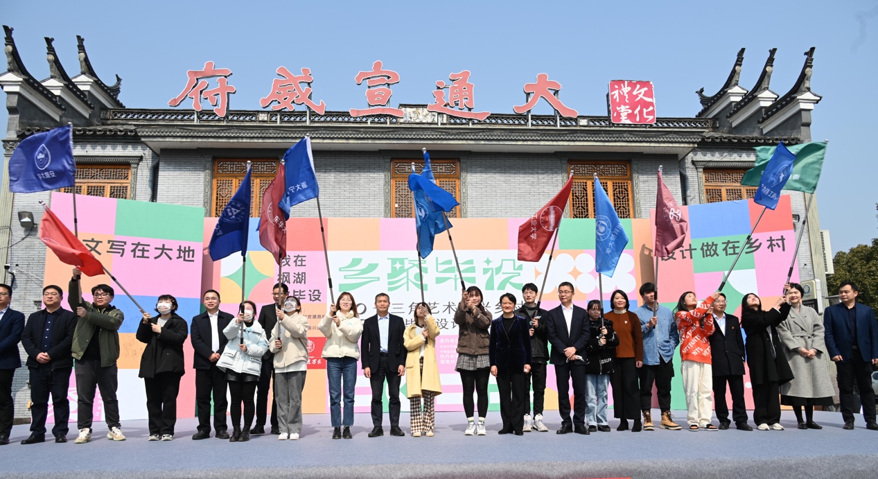 “乡聚毕设·长三角艺术振兴乡村高校毕业设计联合行动”由我院发起和承办,旨在响应国家乡村振兴战略、长三角一体化战略,鼓励更多的青年人才在乡村大地建功立业。在2022届本科毕业设计的时机,我院邀请长三角地区的江南大学、华东理工大学、南京师范大学、合肥工业大学、浙江工业大学、安徽大学等12所高校的100余名师生,以60个毕业论文和毕业设计的选题,聚焦于湖头村、下畈村的人居环境、产业振兴、社区更新、乡村文化等具体需求,以空间环境设计、产业系统设计、乡村服务设计、手作文创设计、数字乡村设计等具体课题,进入高校本科毕业设计的实践和研究范围。