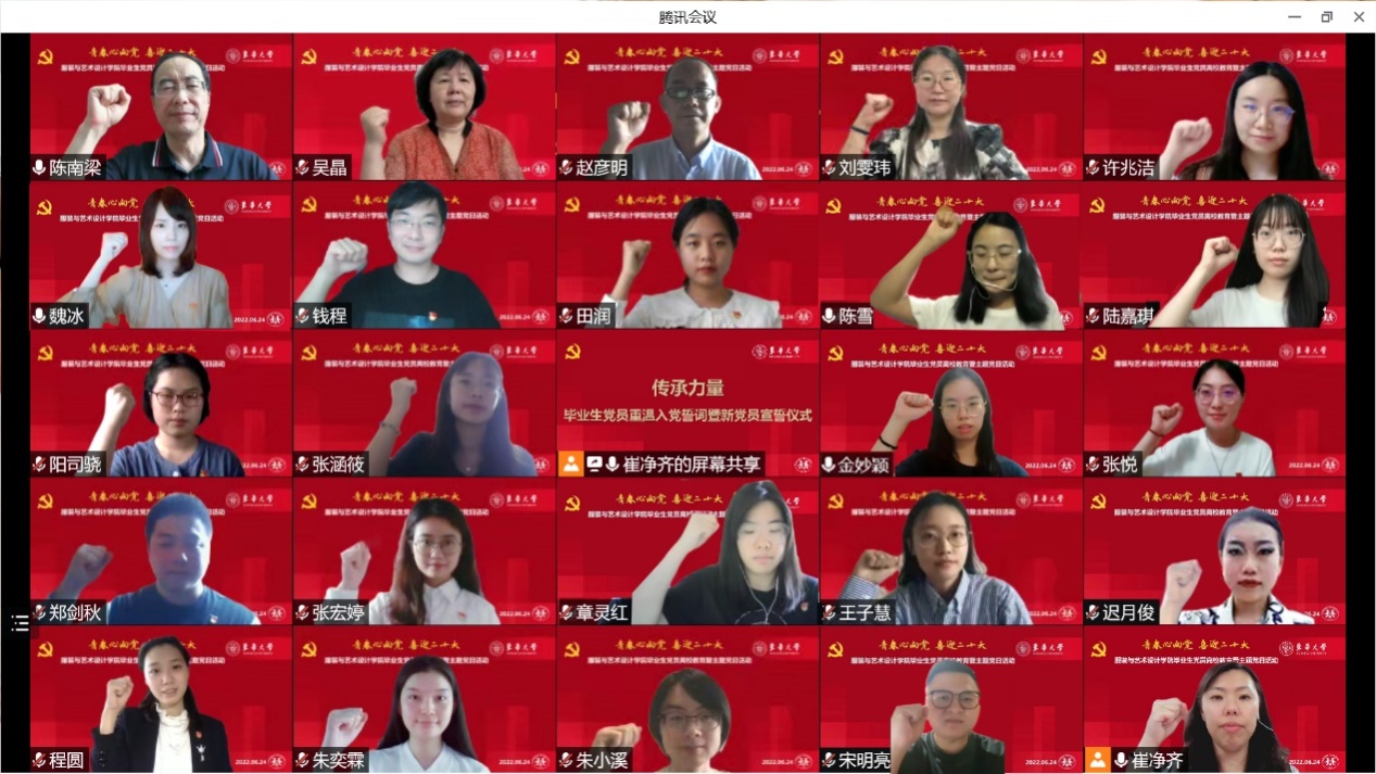 学校进行封闭管理后,学生党员主动亮身份,凝聚起强大的抗“疫”合力。广大党员在疫情防控期间彰显党员本色,将初心写在一线,毕业生党员代表、抗疫先锋程圆认为,这次经历让她看见了党员的赤诚与担当,使她获得了迅速的成长,自觉肩负起时代新人应承担的责任与使命。在校生党员代表、抗疫先进个人郑剑秋表示,作为新青年,必须在奋斗中砥砺意志品质,在实践中增长本领才干。国旗护卫队党支部党员用自己实际行动迎接二十大,展现了在青春赛道上奋勇拼搏的身影。学生也用艺术的方式,将奋斗经历和对自己的期许制成画作送给母校。学生处副处长赵彦明代表学校接受了学生画作。在毕业生党员重温入党誓词暨新党员宣誓仪式上,新发展党员在老党员的榜样带领下,对自己身份有一个更加全面的认识。让入党初心常念常新,让入党使命常履常行。