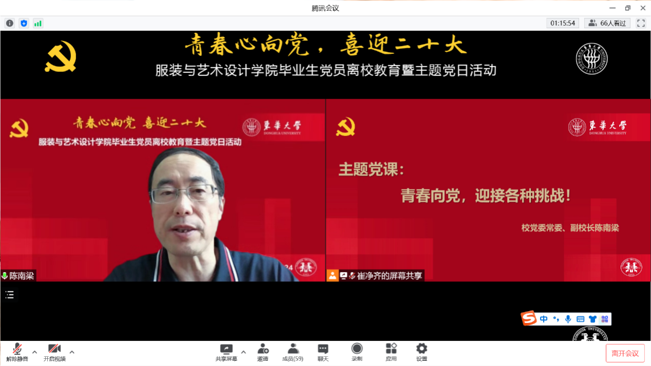 校党委常委、副校长陈南梁做“青春向党,迎接各种挑战!”主题微党课。他带领师生党员一起深入学习贯彻习近平总书记在统筹推动常态化疫情防控工作的重要讲话重要指示精神。他表示,学校在疫情防控中,始终把广大师生生命安全和身体健康放在第一位,毫不动摇坚持“动态清零”总方针,从严从紧落实疫情防控各项政策,师生携手同心,筑起抗疫坚实防线。他勉励毕业生党员,在以后的工作中要发扬伟大抗疫精神,传承中国共产党人的韧性,战胜各种挑战,用奋斗诠释青春,以实际行动迎接党的二十大胜利召开。