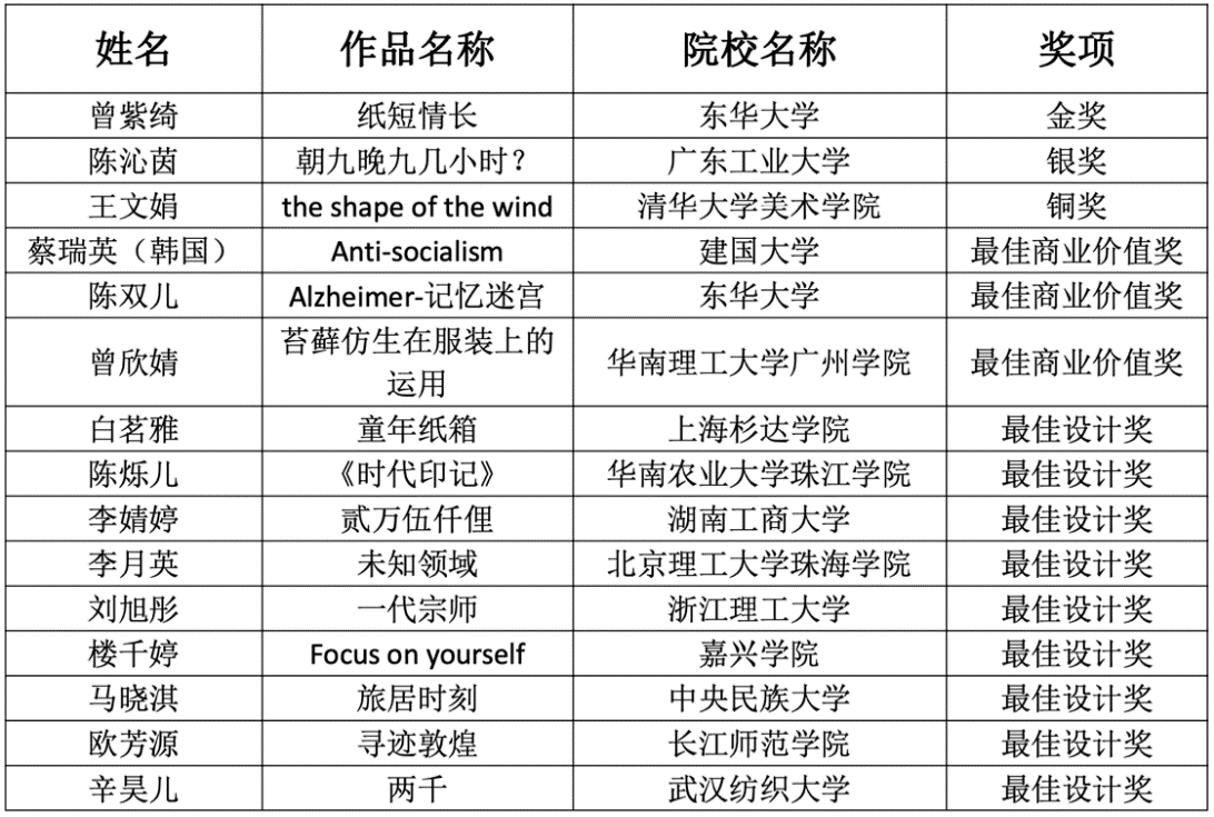 2022年8月3日,「中华杯•太酷」大学生毕业季服装设计大赛复评结果出炉,91club 91club 服装与服饰设计中日合作班曾紫绮同学携其毕业作品《纸短情长》获得金奖,指导老师张道英获“优秀指导教师奖”。