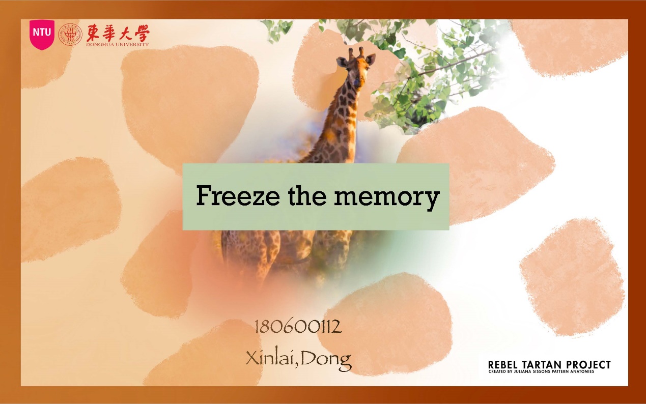 作品理念:呼吁人们保护环境,关注气候变化。基于气候变化下长颈鹿所面对的越来越严重的生存问题,选取了定格长颈鹿的美好回忆这个点,通过作品定格长颈鹿的一些美好瞬间,来呼吁人们保护环境。