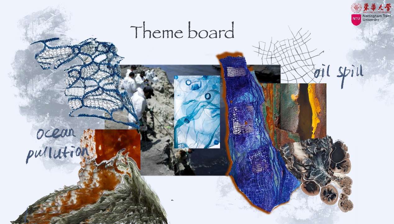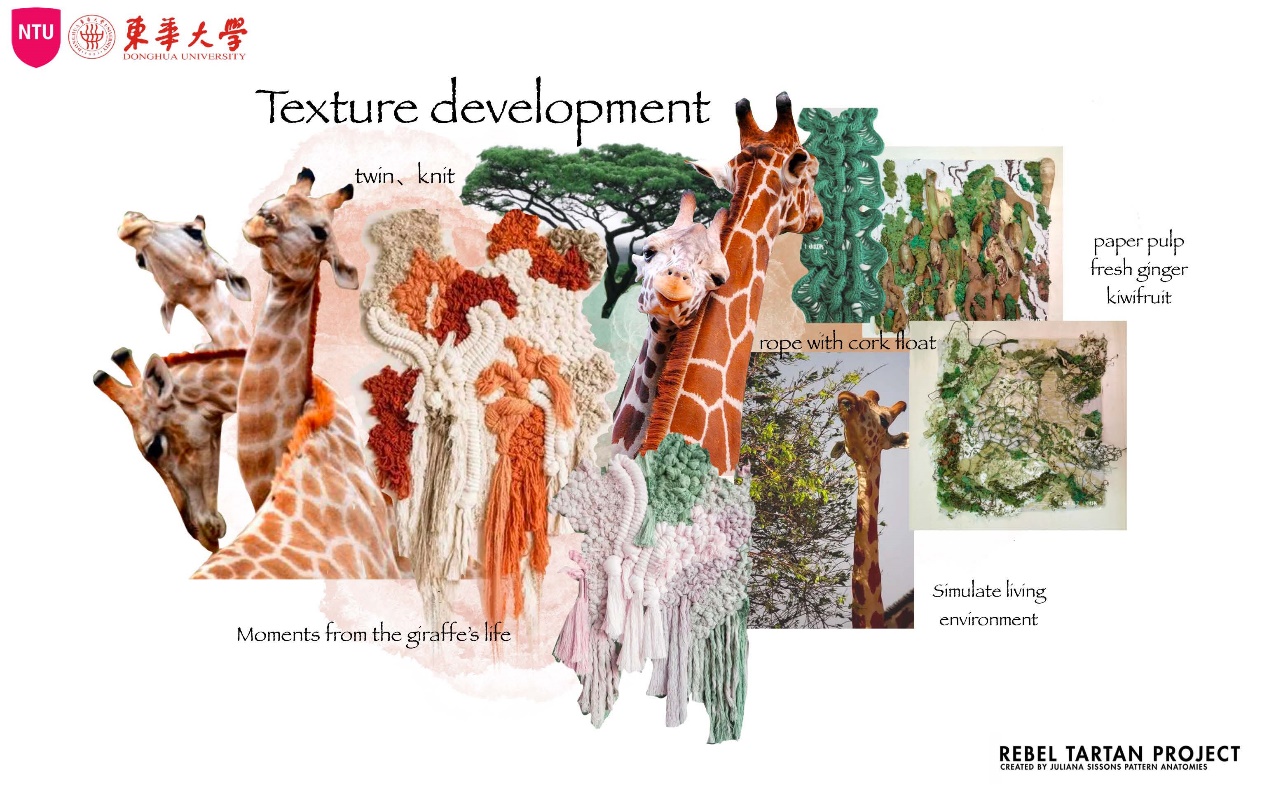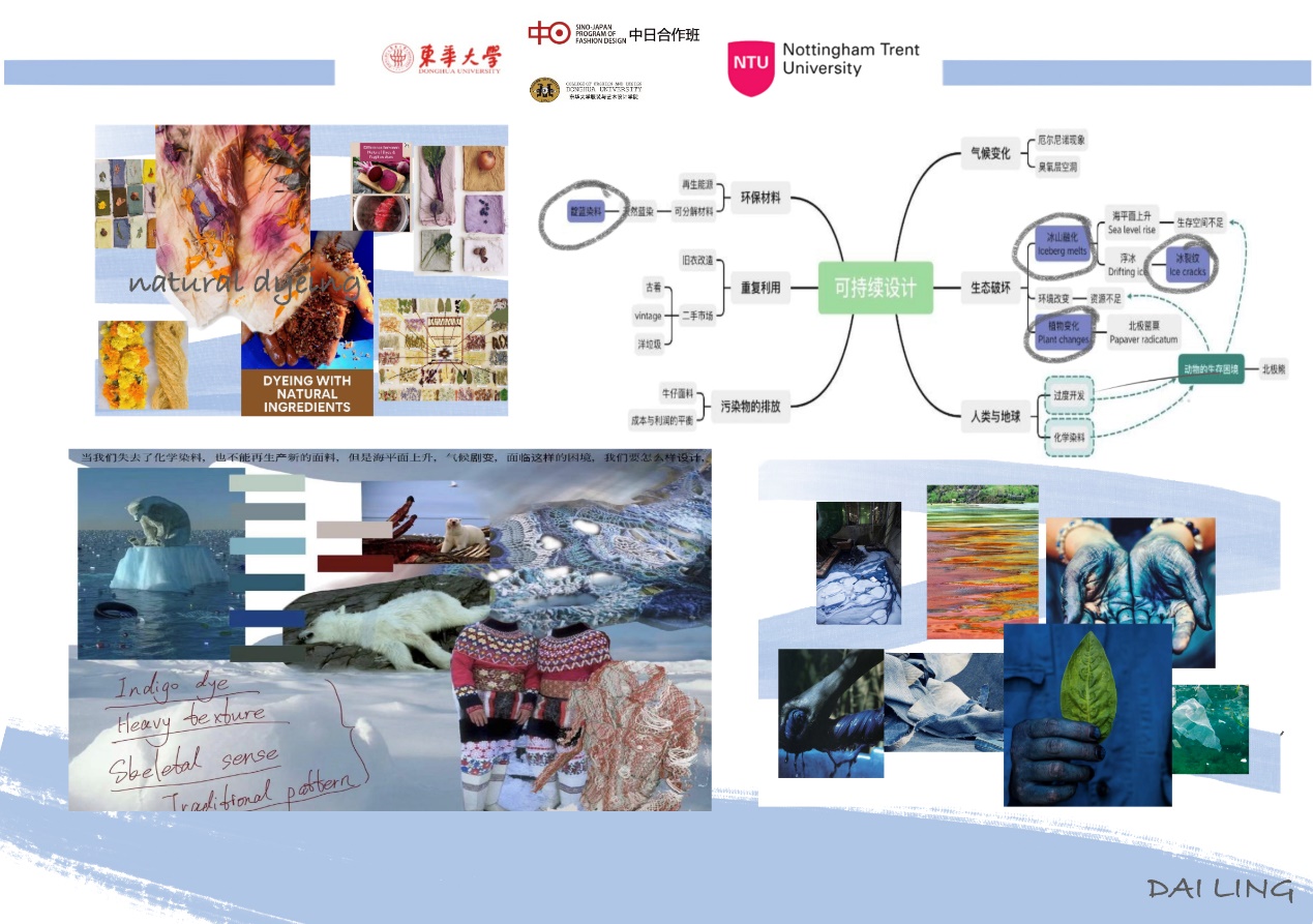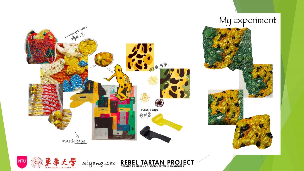 第一模块,依托诺丁汉特伦特大学(Nottingham Trent University,NTU)艺术与设计学院的Rebel Tartan项目,我系部学生与NTU的学生组队,分8组,开展以气候变化为关注点的可持续针织服装主题调研与设计,并完成小组和个人的创意及开发阶段线上汇报。