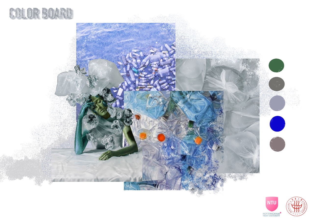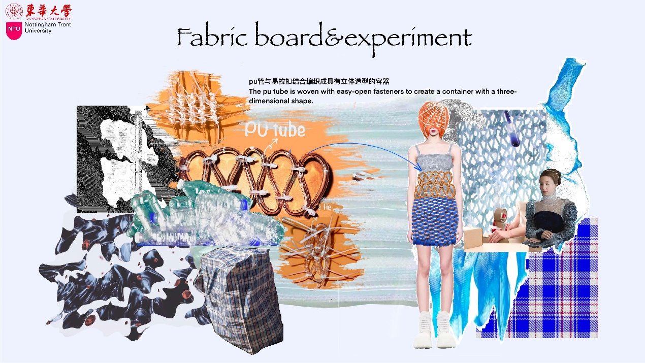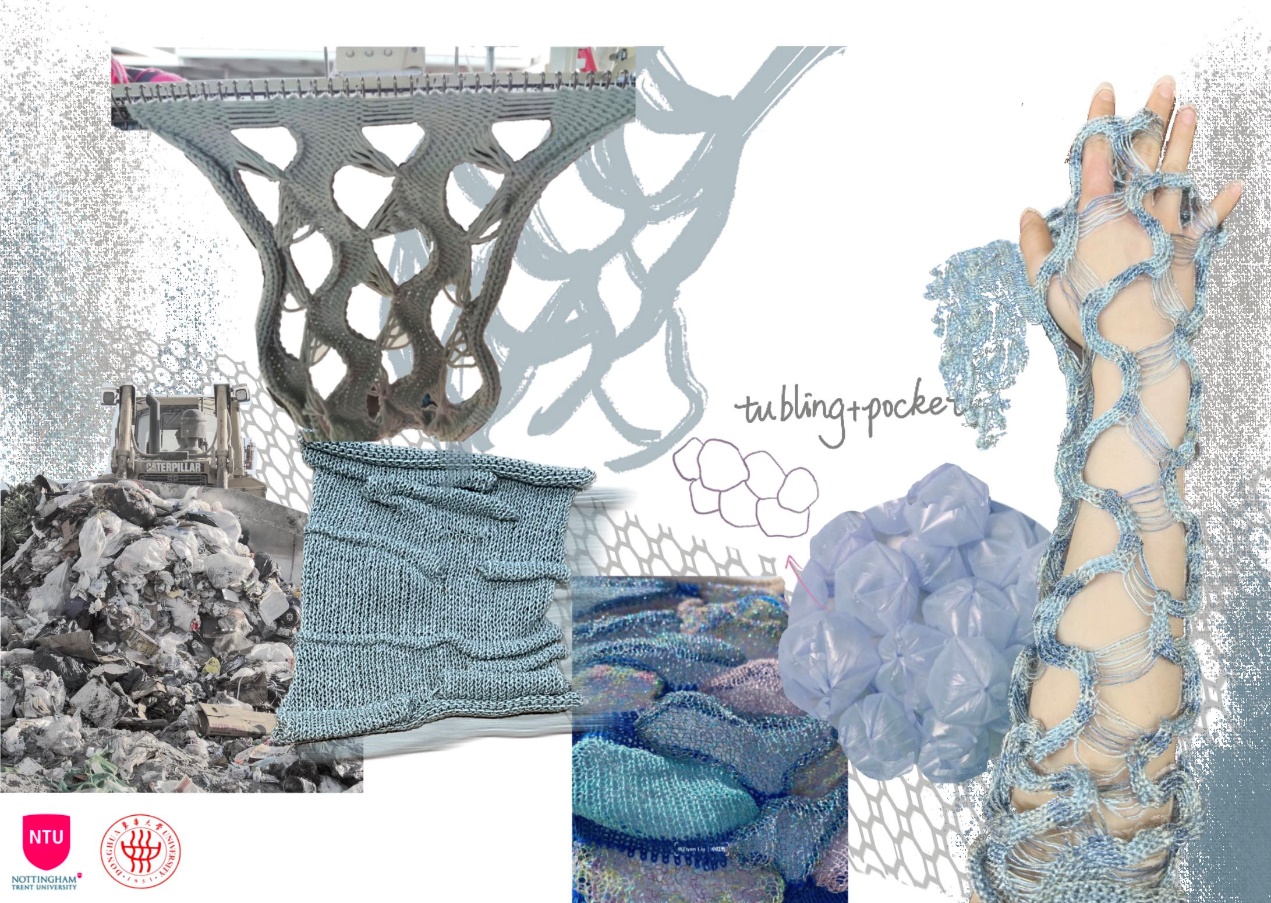 第一模块,依托诺丁汉特伦特大学(Nottingham Trent University,NTU)艺术与设计学院的Rebel Tartan项目,我系部学生与NTU的学生组队,分8组,开展以气候变化为关注点的可持续针织服装主题调研与设计,并完成小组和个人的创意及开发阶段线上汇报。
