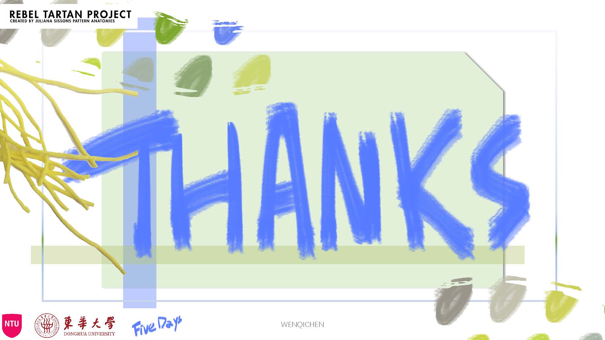 这次与NTU的合作项目课程让大家收获颇丰,我不仅设计完成了个人作品,还根据自己的灵感与想法进行了Rebal Tartan的格纹设计和Style3D的课程学习,让作品更加的丰富并且有了新的展现方式。