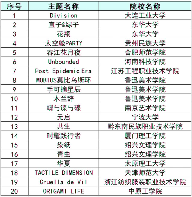 大连工业大学、鲁迅美术学院、南京艺术学院等16所院校的20组作品获优秀奖。