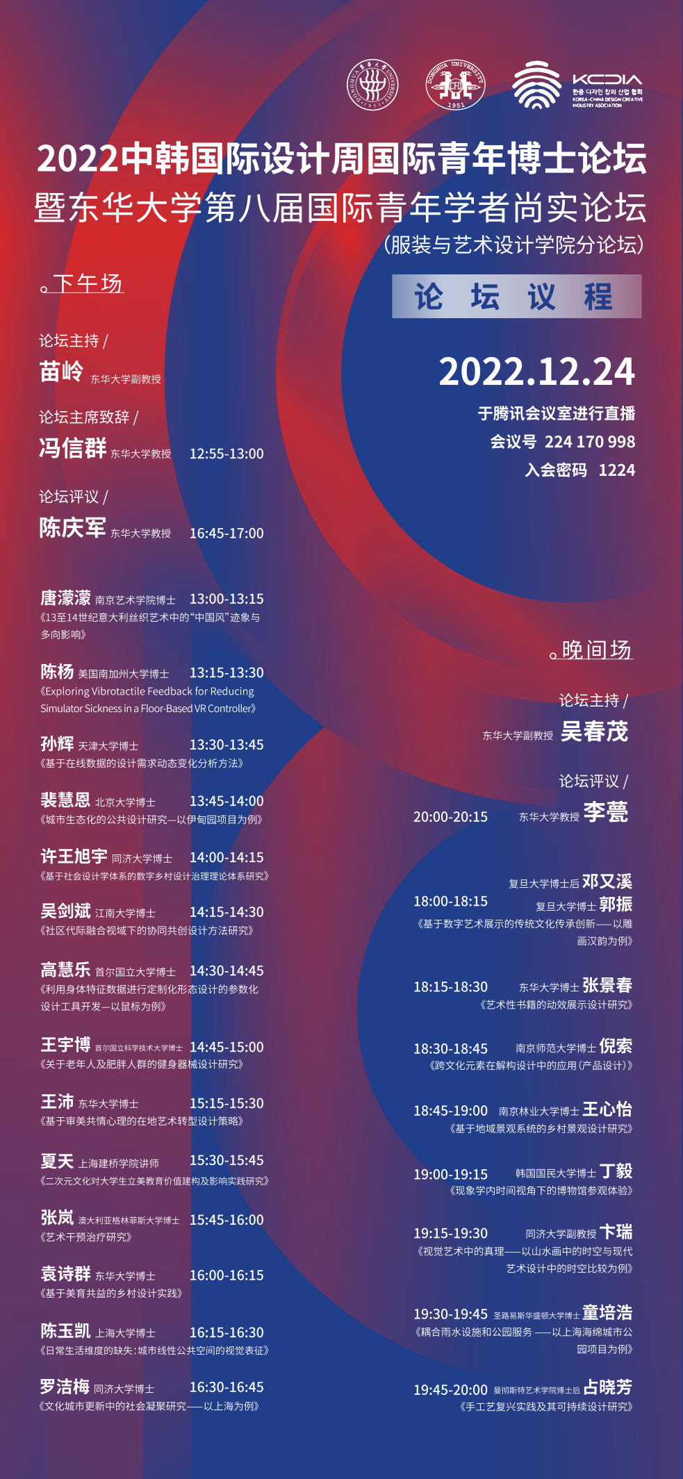 2022年12月24日,2022中韩国际设计周国际青年博士论坛暨91club 第八届国际青年学者尚实论坛(91club 分论坛)在腾讯会议顺利召开。