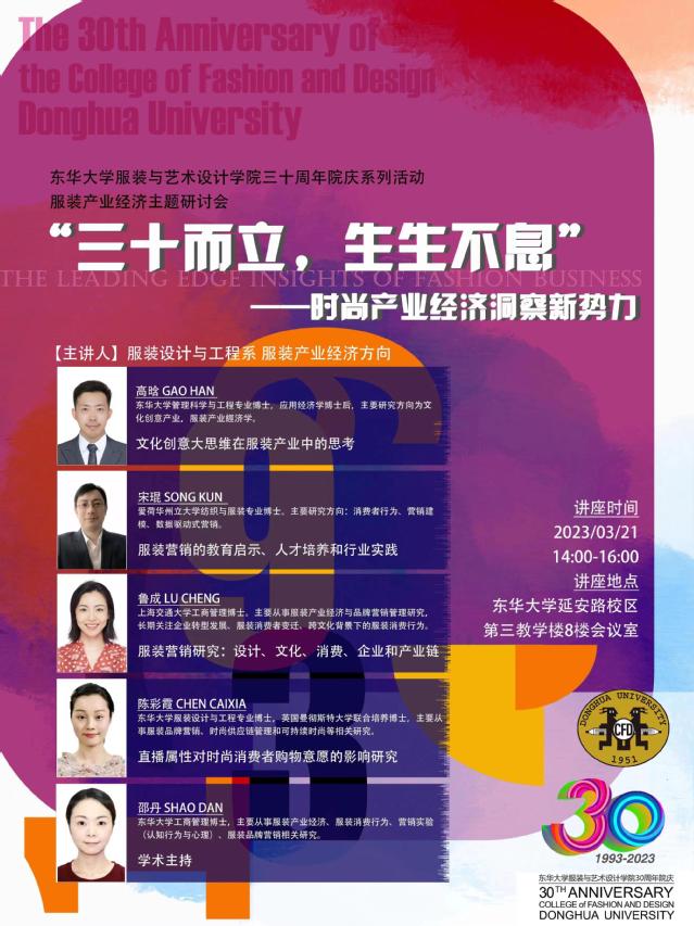 三十周年院庆 | 服装产业经济主题研讨会预告:“三十而立,生生不息”——时尚产业经济洞察新势力