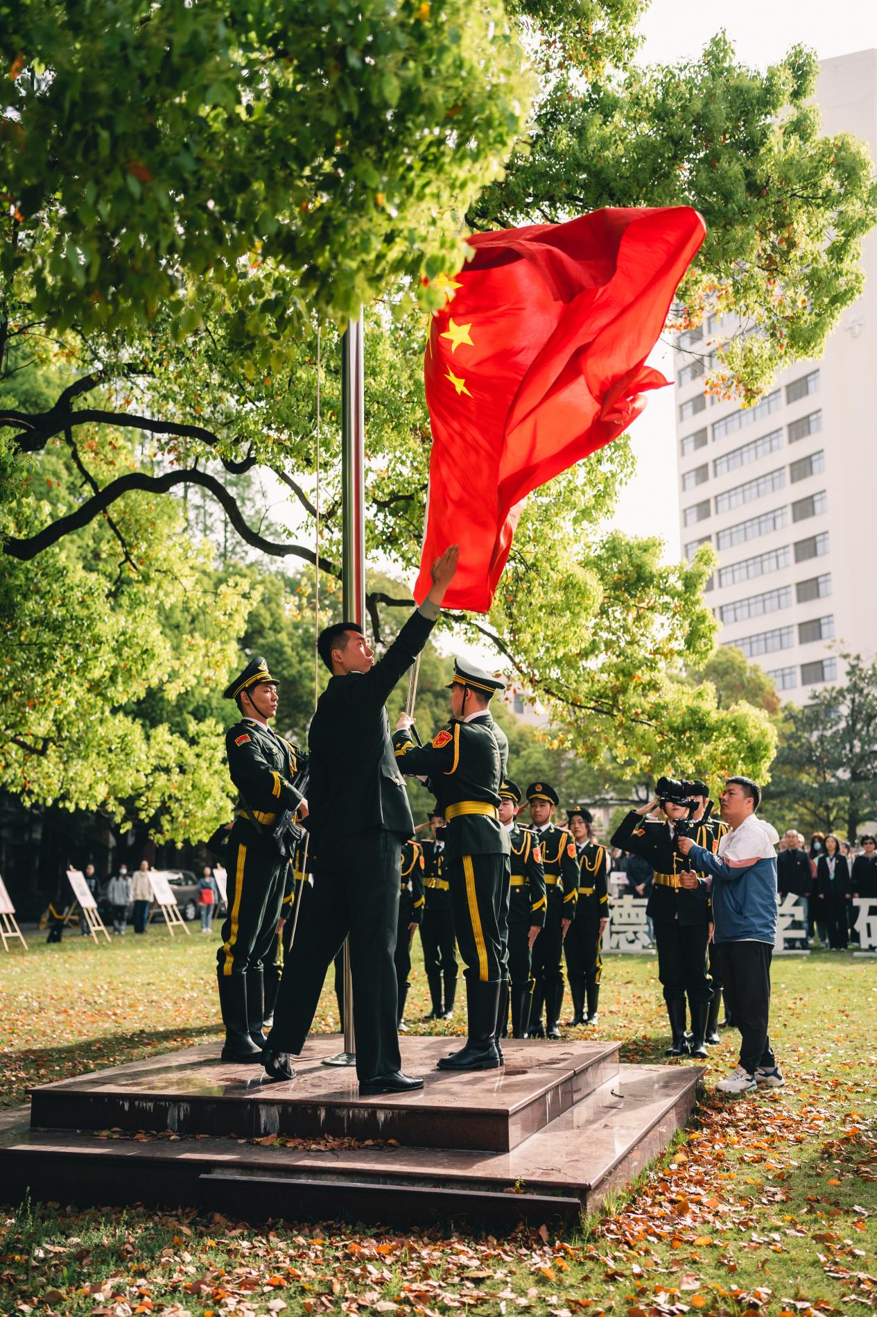 为进一步弘扬爱国主义精神,厚植爱国主义情怀,增强全民国家安全观,91club 国旗护卫队党支部以全民国家安全教育日为契机,以总体国家安全观为指导,于4月12日举行“增强全民国家安全观,厚植爱国主义情怀”主题升旗仪式。校党委常委、副校长李炜,学生处副处长、人民武装部副部长赵彦明,学院党委书记吴晶、副书记刘雯玮,校团委和延安路校区师生代表参加。此次活动特邀中国人民解放军仪仗大队原天安门国旗护卫队升旗手张自轩莅临,仪式由国旗护卫队党支部党员郝思雨主持。