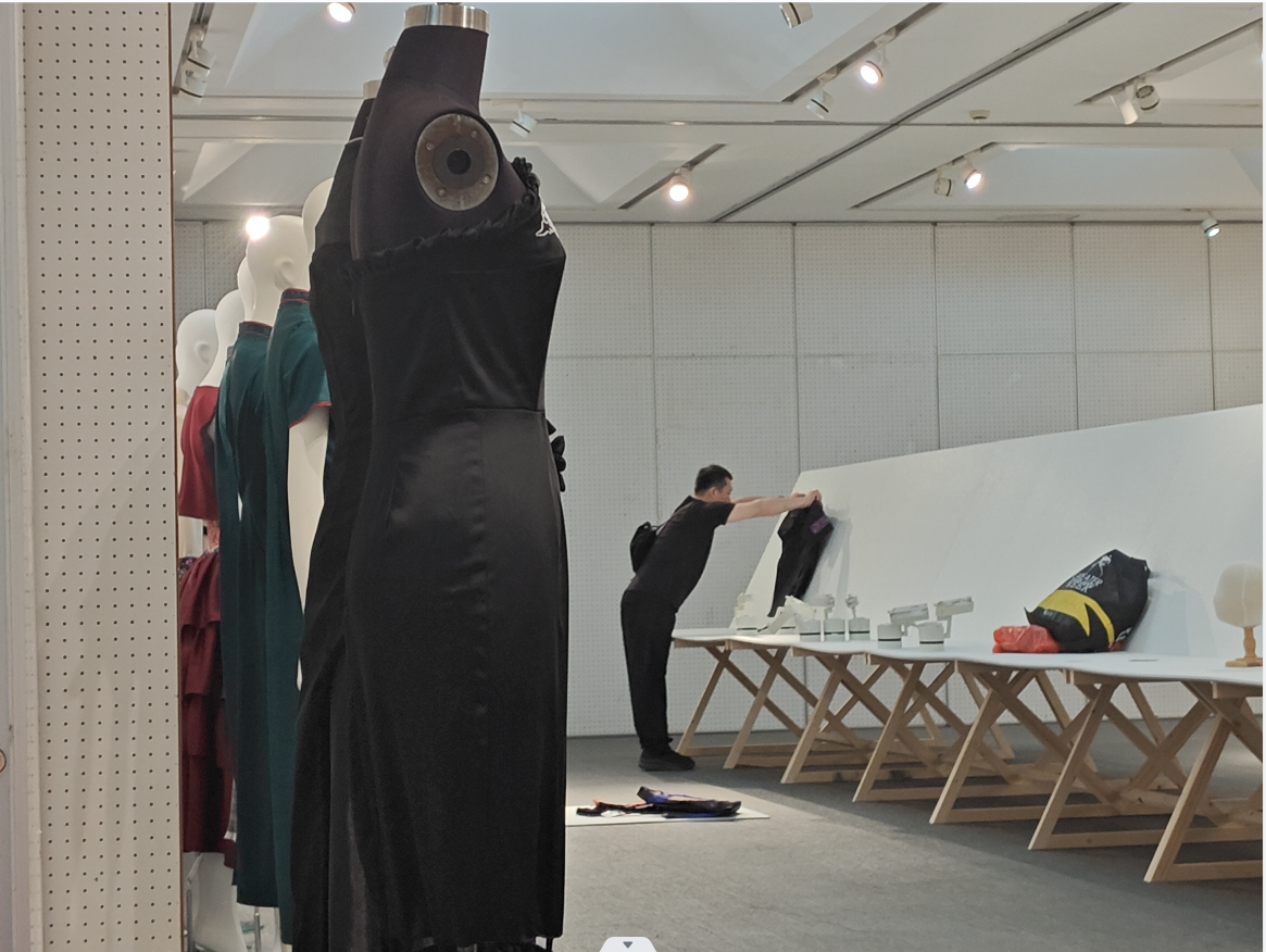 创新设计展区的民族服饰改良装是东华“服装可持续创新设计创作”的课程作业,要求每人须完成一套。学员们利用在东华研培课堂上学到的平面制版与立体裁剪、缝纫工艺等知识,经过张顺爱老师的指导,在短短一月时间内共完成了32套服饰,超过半数学员超额且高质量地完成任务,令人又惊又喜!