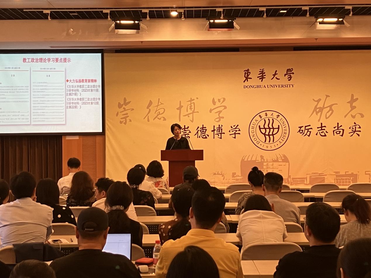 党委副书记、纪委书记张云洁在会上作了近期教职工政治理论学习工作部署与领学,并开展了警示教育。她传达了学校关于学习习近平总书记教师节重要指示精神的工作提示,带领全体教师学习了教育家精神,要求各支部、系部学深悟透习近平总书记关于教育的重要论述,大力弘扬教育家精神,追求卓越。结合教育部公开曝光的第十三批违反教师职业行为十项准则典型案例,张云洁强调了财经纪律、特别是科研经费使用纪律要求,希望教职工们将学制度、学纪律作为日常政治理论学习重要内容,牢固树立底线意识,不触碰红线、高压线,相互监督,在纪律的保障下推动学院高质量发展。