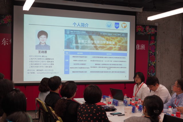 同济大学医学院博士后王诗潭助理研究员的报告主题是“可穿戴式康复辅具人机交互的生物力学研究”,她从康复辅具的发展、康复机器人临床应用痛点、人机交互生物力学评估等方面介绍了近年来的研究情况,带领大家感受了服装学科与生物力学交叉研究的重要性。