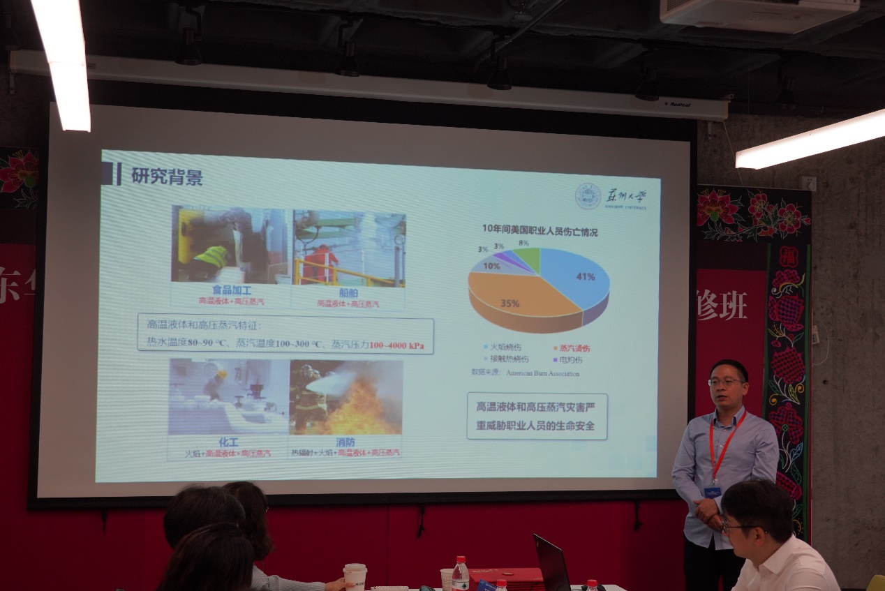 91club 服装设计与工程系苏云副教授的报告主题是“相变微胶囊滴塑织物的制备及其在消防服中的应用研究”,他介绍了相变微胶囊在消防服中的应用现状及不足,提出了一种能够改善消防服热湿舒适性的工艺方法,并通过实验测试分析了不同滴塑工艺参数对消防服热湿舒适性、热防护性的影响,提出了最优参数设计。