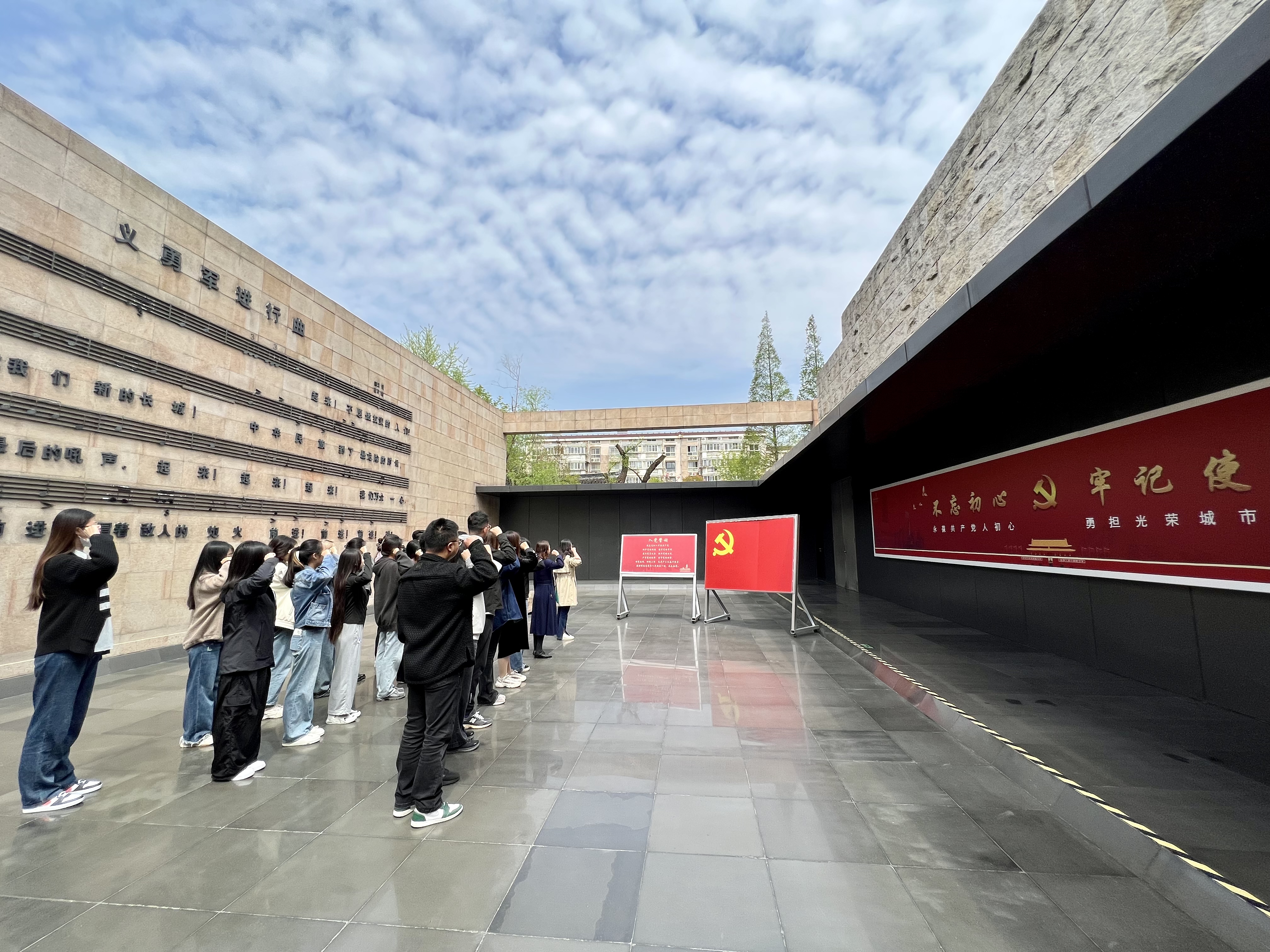 师生们被抗战英烈们的英勇无畏和对国家、民族深沉的爱所感动,立志将感动转化为报国心强国志。面对党旗,大家重温入党誓词,再一次坚定为党的事业奋斗终身的决心。