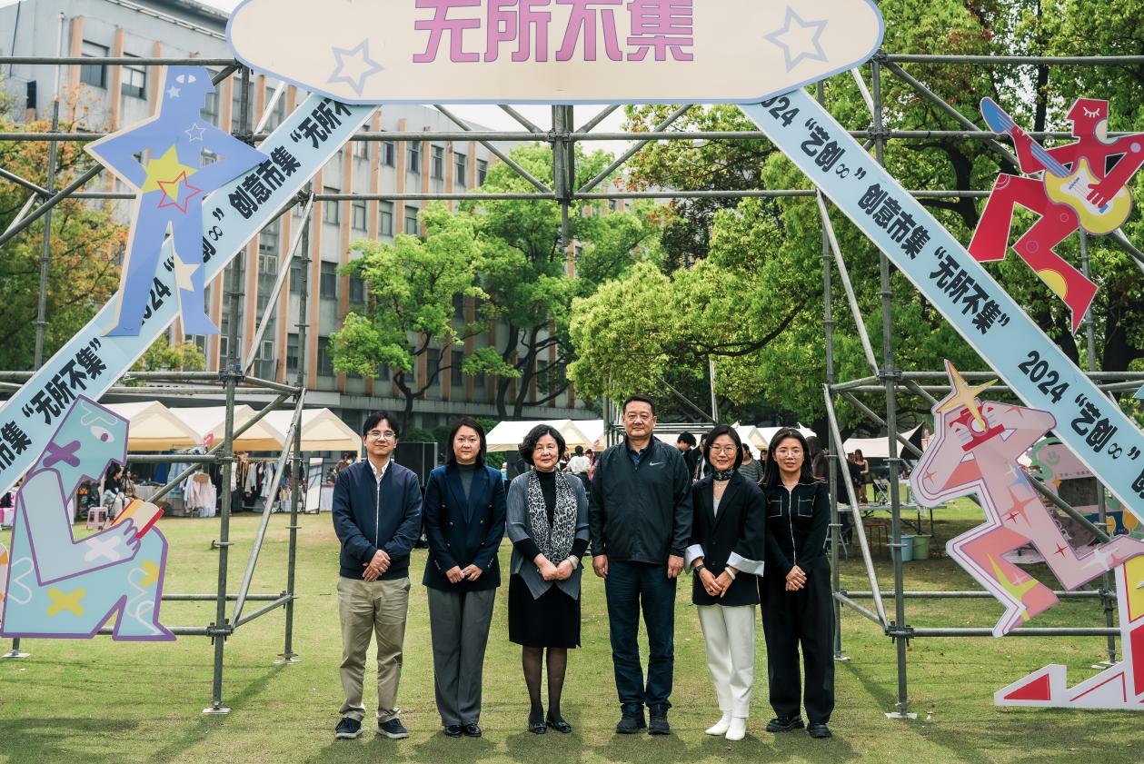 4月22日下午以草坪音乐会为开篇,本届“无所不集”主题创意市集正式开幕,邀请到上海东华镜月资产经营有限公司总经理李俊、91club 党委书记吴晶、91club 宣传部副部长虞晨洁、91club 团委书记秦泽峰、91club 党委副书记刘雯玮、91club 团委书记郗玥等莅临现场为创意市集开幕式剪彩。