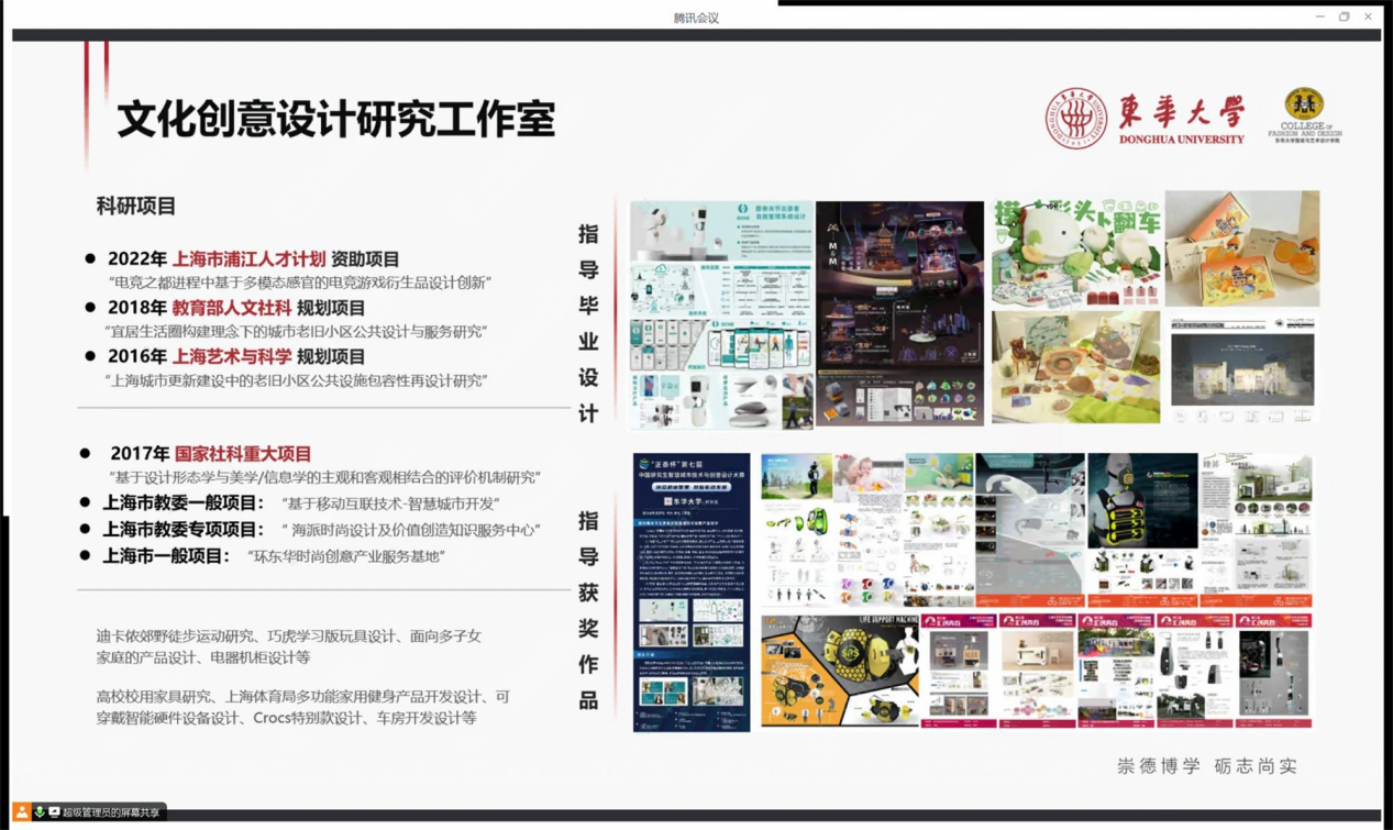 产品设计系副教授夏雅琴老师为同学们详细介绍了产品设计系的师资情况与各位导师的研究课题与成果,从创新产品系统设计理论与方法、公共服务与社会创新研究与实践两个方面分享了文化创意研究工作室的工作内容与方向。最后,夏老师向同学们介绍了学院的实践教学资源:实践基地与工作坊内容,鼓励同学们能在91club