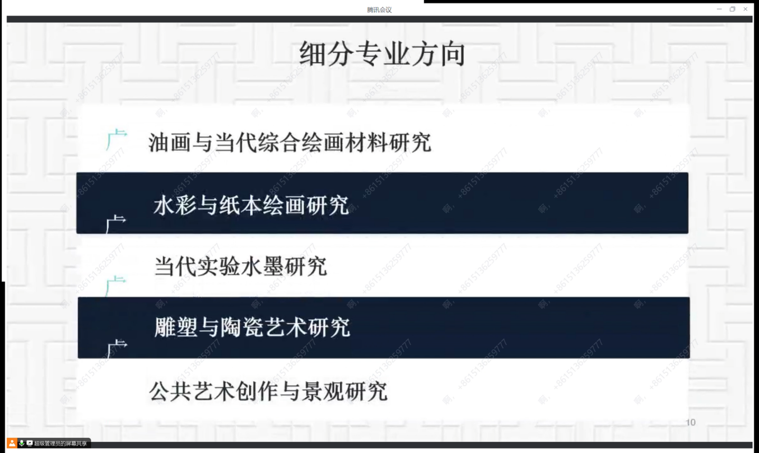 美术学部唐濛濛老师从学科简介、专家团队与培养方案三个方向介绍了美术学专业的学科发展情况。唐老师表示学院目前拥有优质的跨学科师资队伍,丰富的教育资源和多元的艺术研究方向,与丝绸博物馆等单位也建立了多个校外实践基地,并与意大利佛罗伦萨美术学院、威尼斯美术学院等学校建立了多个国际文化交流平台。唐老师也向学员们介绍了目前美术学部所开展的一系列专业讲座与实践活动。
