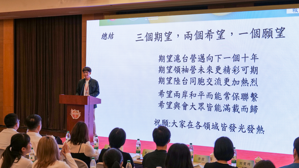 沪台营营员代表来自台湾中央大学的张哲维在交流分享中表示,2019年第一次参加沪台营还是学生身份,今年已是教务处老师身份,转瞬沪台营已经走过了十年,每年虽然只有短短的几天,但留下的却是值得永远珍藏的回忆和友谊。