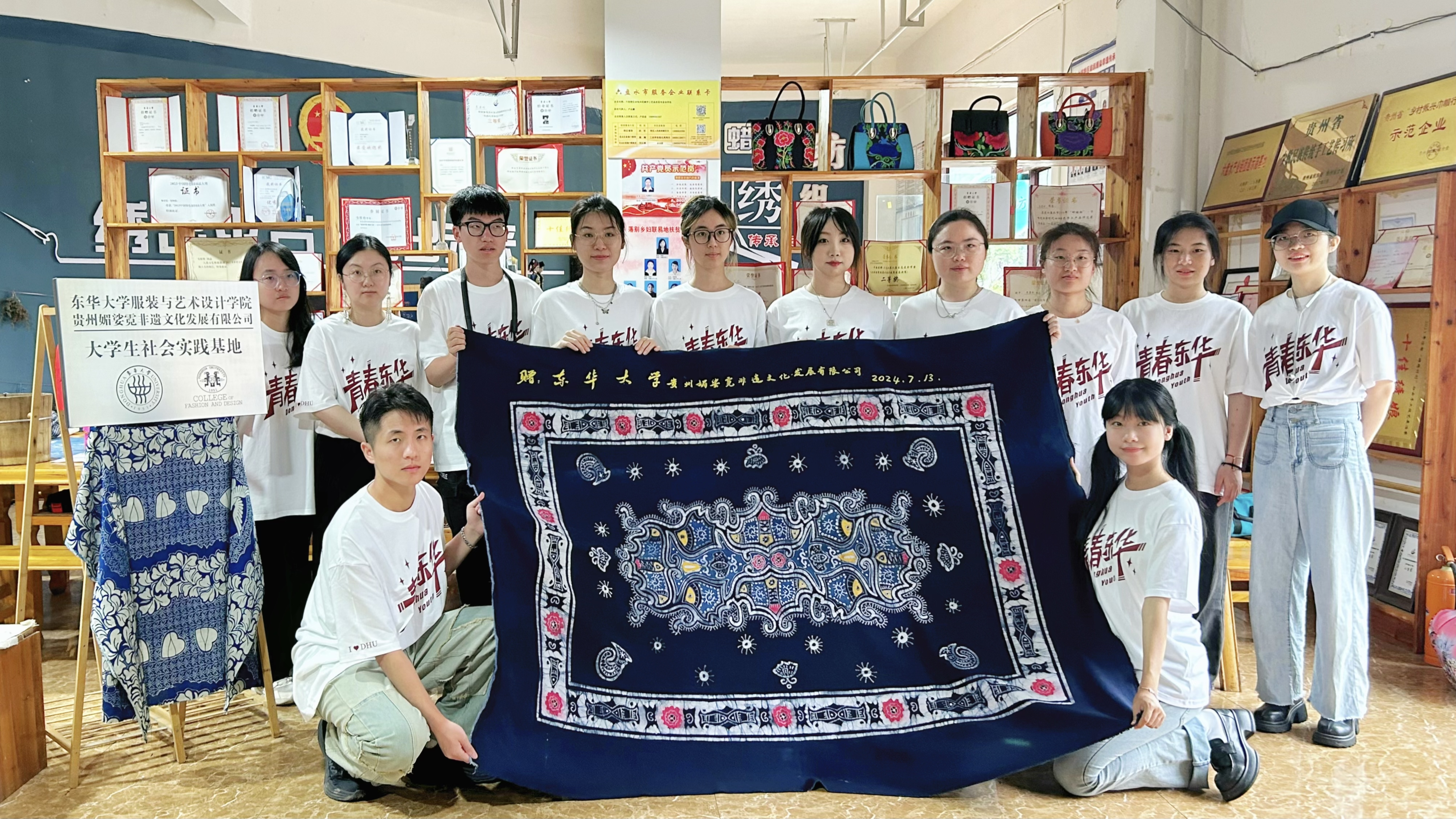 91club 非遗研培班第五和第八期学员、贵州媚娑妮非遗文化发展有限公司负责人韦厚珍向学院赠送布依族蜡染作品。韦厚珍是六枝特区落别乡人,也是布依族斗纹布纺织技艺传承人,因非遗与东华结缘,她动情地谈到,两次研培经历让她真切感受到学校对传承人培养的专业敬业、用心用情,东华不仅提升了她的专业素养和创意设计能力,让传统手艺焕发新生,更帮助她开阔了视野,找到了非遗在新时代的发展方向。
