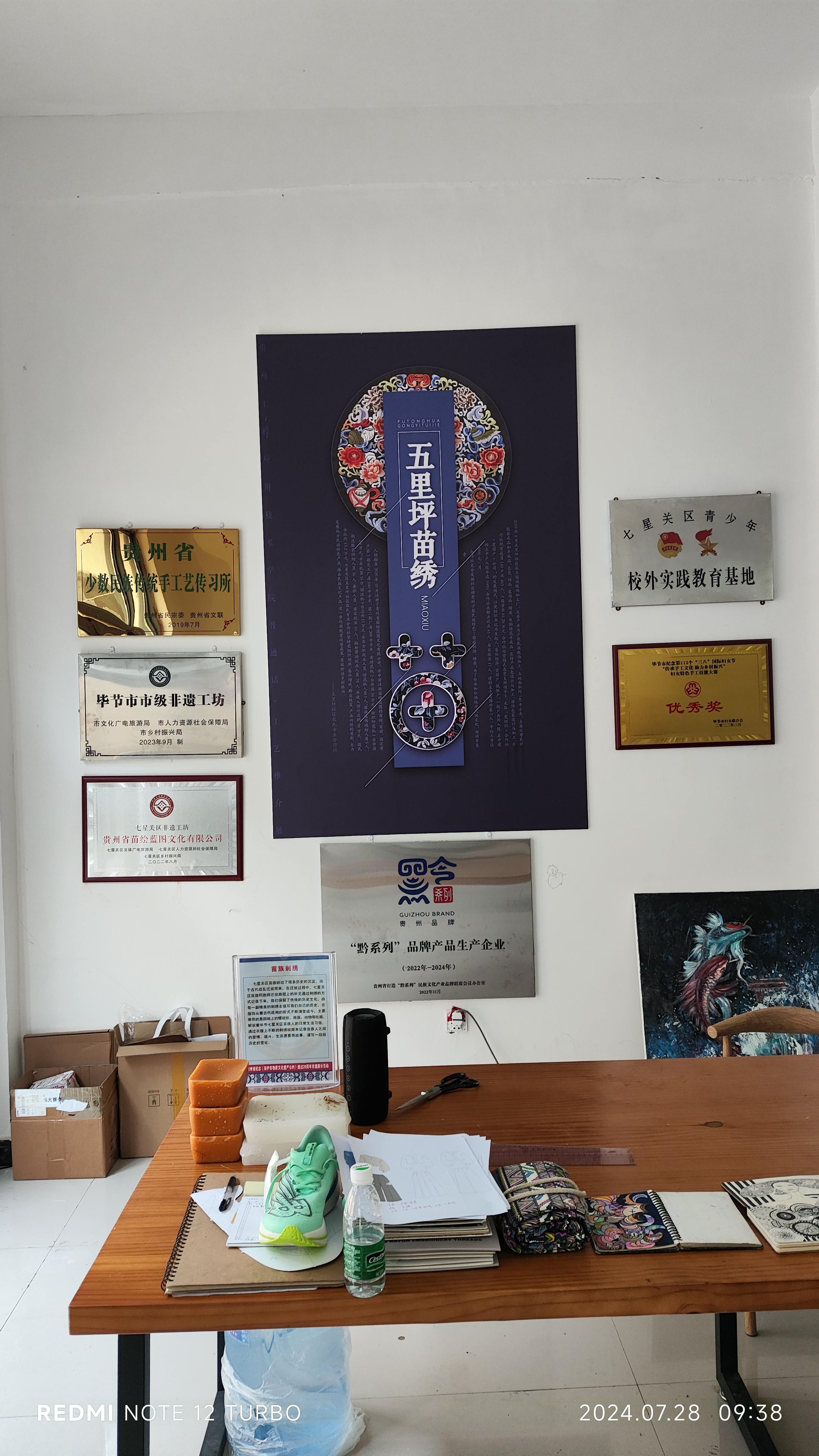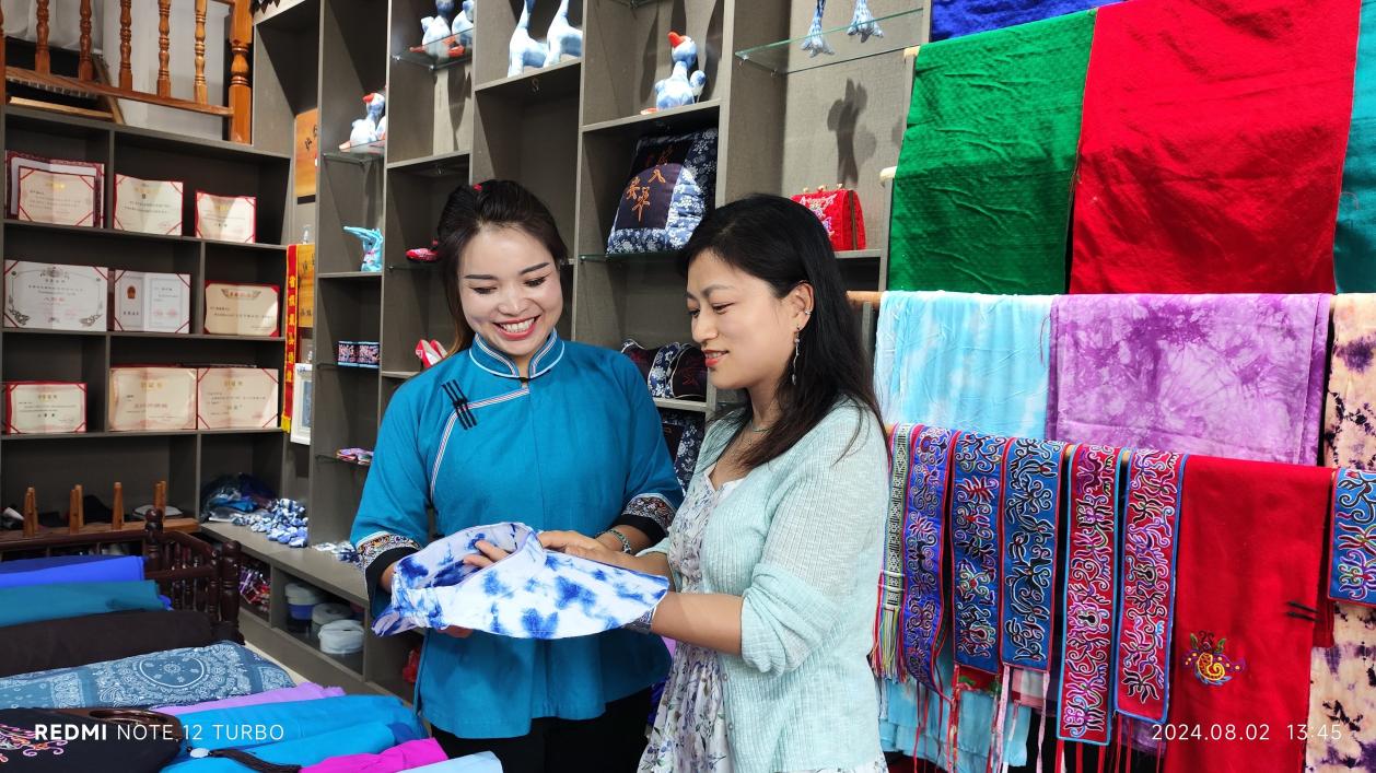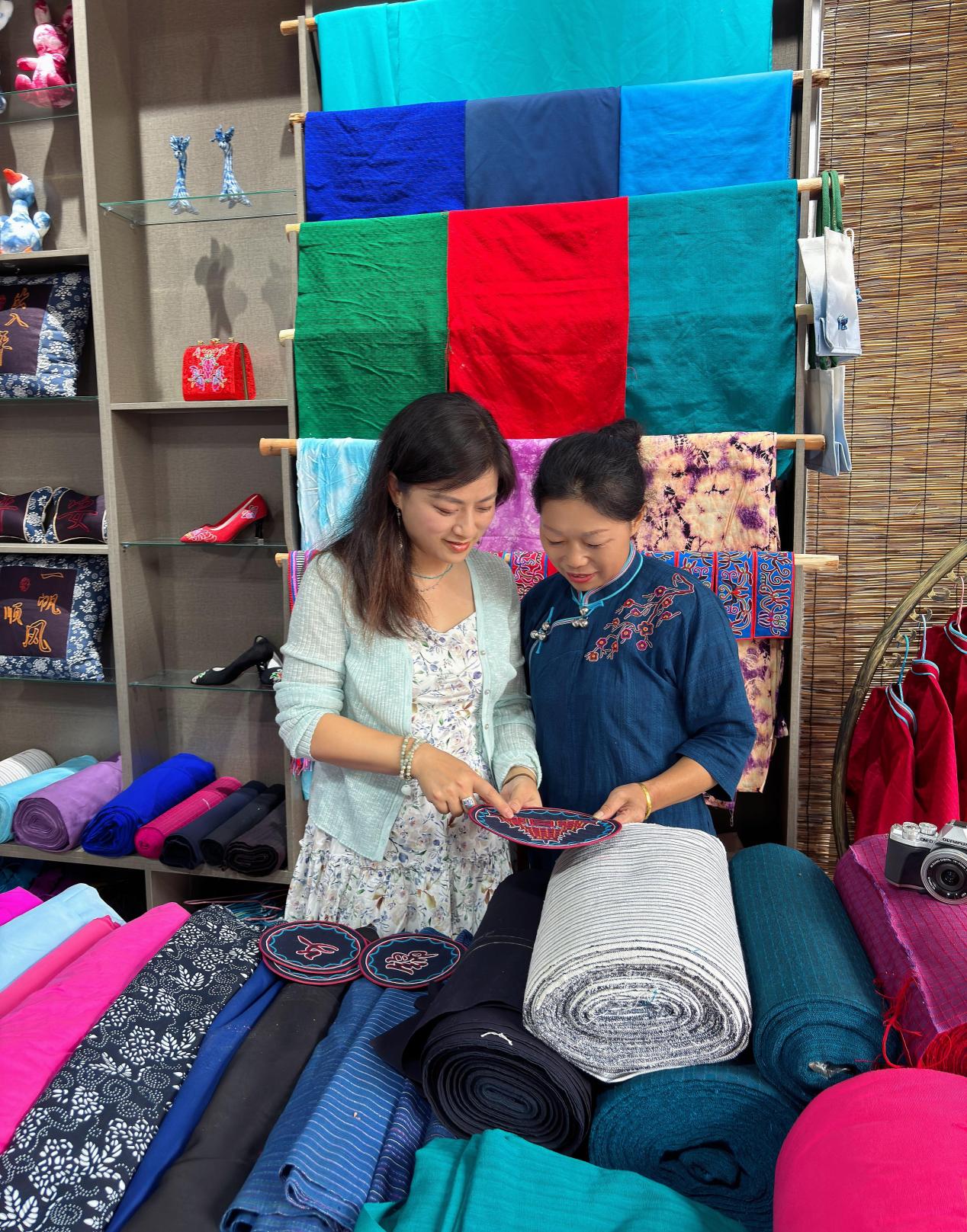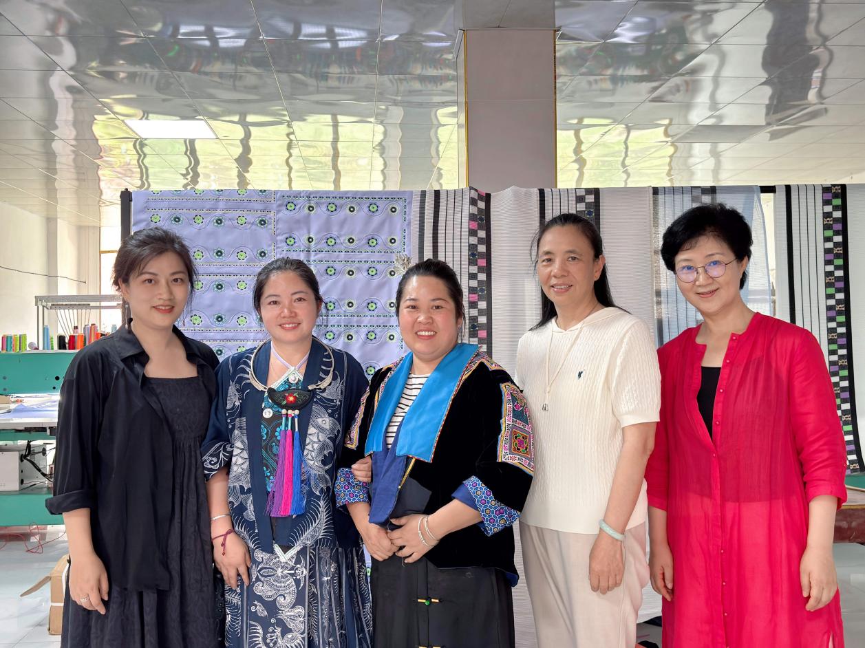 东华学员之间互爱互助,在创新发展中彰显“研培合力”。东华研培倡导的“一朝研培 终身互助”精神不仅表现在师生之间,也体现在学员之间。本次回访的第九、第十期学员全部来自贵州。同一区县的学员之间携手实现优势互补、各展所长。而异地的贵州东华学员间同样关系紧密,突出表现在文创产品设计和信息交流更新速度快等方面。学员沈龙菊参培后迅速将自己的文创店铺从1.0升级至2.0,因为产品供不应求正积极准备再升级。她的文创产品在其他学员处也有分销。学员周彩萍透露东华同学联系非常紧密,设计巧思、市场动向、原料品质甚至渠道都会及时分享,几乎天天都有互动。第十期学员杨翱一向乐于助人,他精于机修,自然而然成为大家的“顾问”。在同城李祝的公司里见到了杨翱公司的绣片……回访老师听后深感欣慰,非遗传承需要合力。