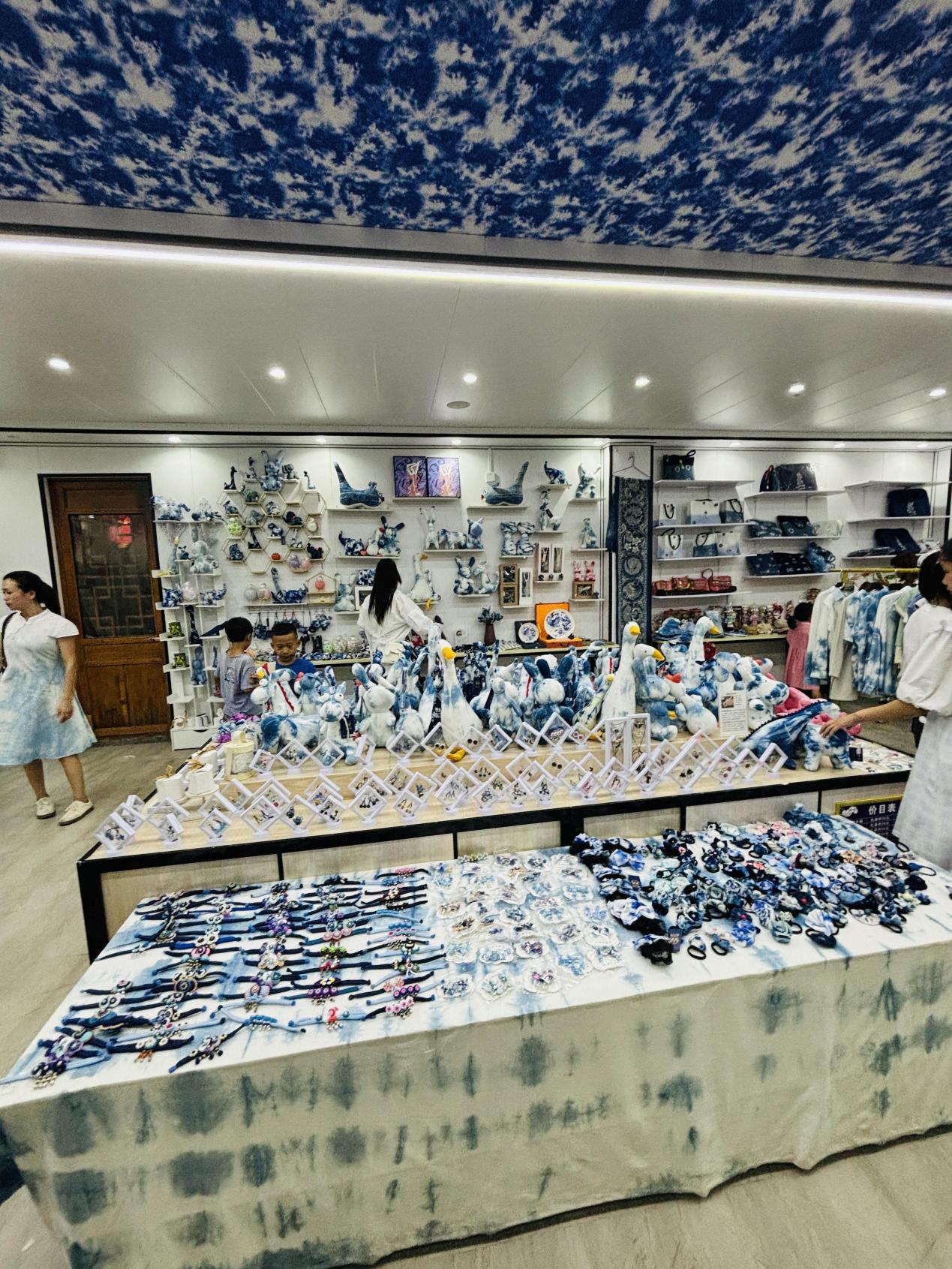 学员杨翱是此次回访给老师们惊喜最大的,他刚完成清华大学校庆伴手礼的订单,又接到了国际名牌的外贸订单,他的非遗工坊是附近高校设计专业学生的毕设实践基地。杨翱兴奋地给老师们描绘了公司的蓝图,未来方向将指向元宇宙服饰及文创设计。