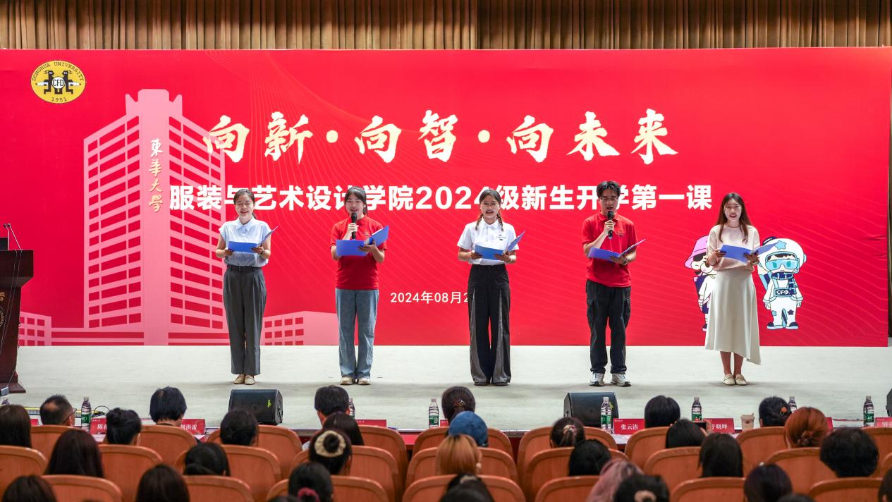 服设2402班梁雨阳同学代表新生共同展望未来,表达了来自东华新人的真挚心声:儒有博学而不穷,笃行而不倦。作为东华服院新生,要志存高远,用勤奋的汗水浇灌梦想的花朵,在勇攀学术高峰中奋楫扬帆,书写青春华章。