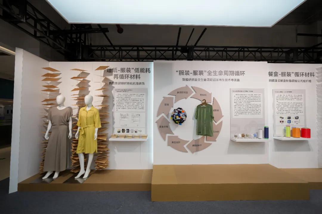 “服装-服装”聚酯纺织品全生命周期循环再生技术与装备、“造纸-服装”低能耗再循环材料、回收废旧餐盒制备超细旦丙纶纤维技术、酒店废弃布草制作的可持续系列服装……一件件以自然为灵感,以科技为翅膀的展品将美观与实用巧妙融合,展现了人与自然和谐共生的智慧,共同组成了一篇科技与绿色环保的交响乐章。
