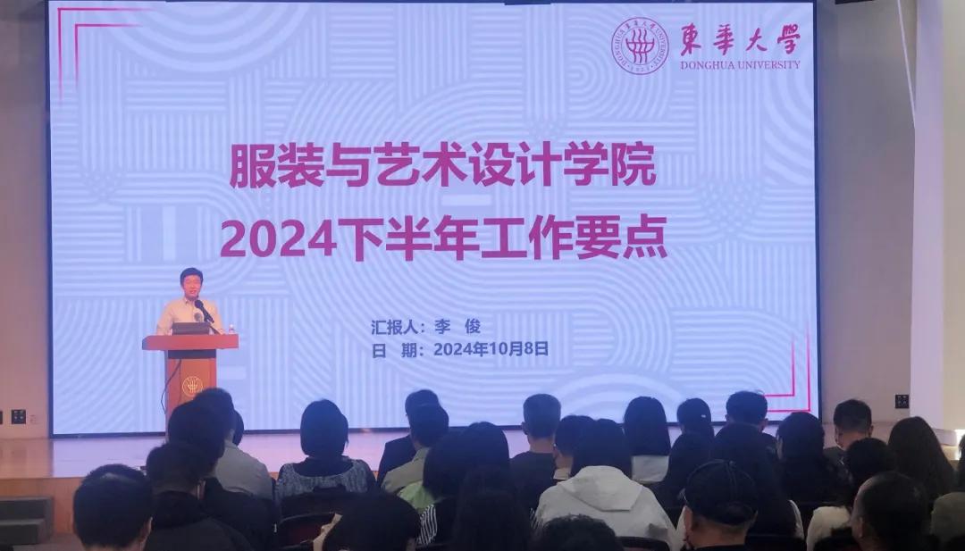 院长李俊围绕“构建以服装为龙头,以设计为主体的时尚学科生态链,建成国内领先、国际一流的以服装科技与时尚设计为特色的综合设计学院”的发展目标,从学科建设、师资队伍建设、人才培养、科学研究与创作、国际合作、社会服务等六个方面进行了工作回顾与部署,号召全体教职工奋力谱写高水平学科建设、高质量人才培养和高效能学院治理的新篇章。