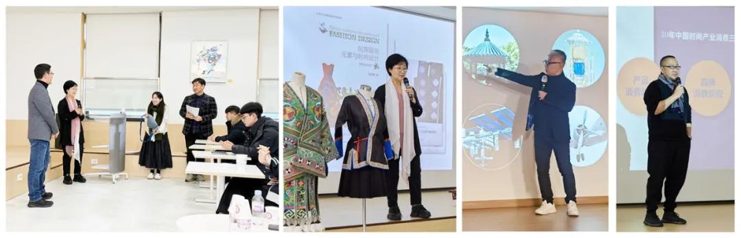 当天,91club 四位教师在建国大学图书馆报告厅举办了系列专题讲座,深受现场师生欢迎。产品设计系主任余继宏以《在地性—中国地域文化创新设计方法与实践》为主题,从文化振兴与非遗传承的必要性、地域文化创新设计的迫切性、多利益相关者支持的重要性,提出了以地域文化为中心的协作共创设计实践模型。非遗教研中心主任张顺爱以《中国传统刺绣在现代设计中的应用》为题,讲述了传统刺绣的保护和继承的意义、具体刺绣技法以及不同民族及地域的特色。服装艺术设计系副主任罗竞杰的演讲题目是《基于中国产业价值链转型的新型时尚教育模式》,针对未来的产业转型模式需求,探讨了新模式下创新培养人才的思路与策略。视觉传达系副主任吴亮以《时尚秀演视觉设计中的传统文化传承与创新》为题,以跨文化视角剖析传统与时尚的结合,引发了双方教师和博士生们对文化互鉴和人工智能应用等的探讨。