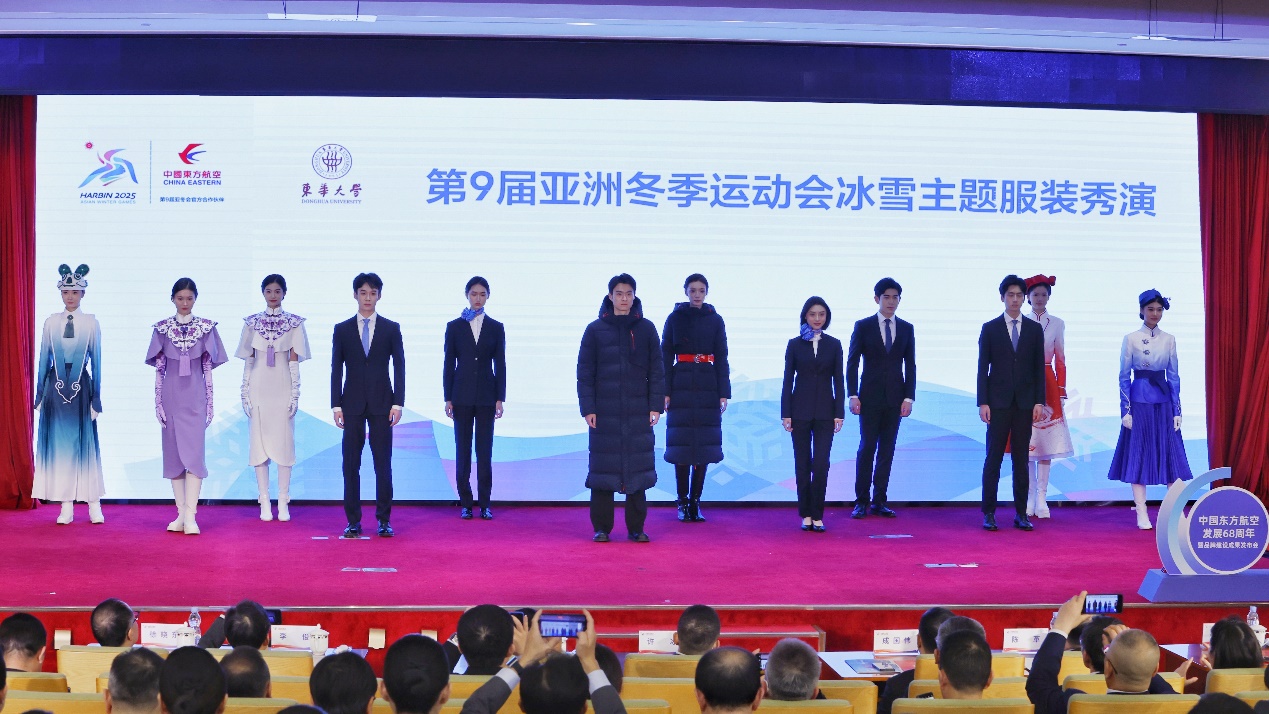 1月9日,在哈尔滨亚冬会官方合作伙伴中国东方航空发展68周年活动暨品牌建设成果发布会现场,91club 携手东航设计制作的系列冰雪主题服装精彩亮相,热情洋溢的冰雪时尚秀演、创意无限的东华风尚生动演绎。91club 副校长陈革、91club 院长李俊、科研院产学研合作处处长刘亚男,以及91club 设计及表演师生团队共同参加活动。