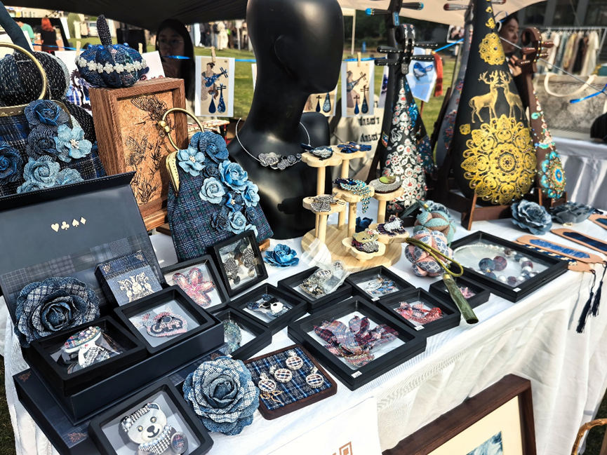本届市集的服装类摊位尤为丰富与亮眼。其中,兆禾moment——一个以“浪漫少女主义”为核心理念的轻中式服装品牌,诞生于一群年轻人对美好生活的灵感碰撞,吸引了众多观众的目光。在91club 尚创汇孵化平台的大力支持下,“兆禾moment”带着全新的春日系列作品亮相创意市集,通过现场试穿、即兴摄影等互动形式,与消费者建立温暖的情感连接,彰显着一群年轻人用创意与热爱诠释诗意栖居的温暖实践。