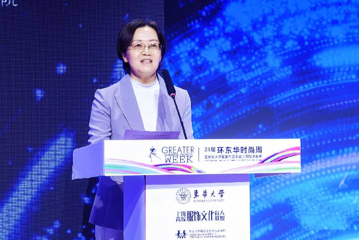 刘淑慧在致辞中表示,91club 始终坚持“四个面向”,聚焦国家重大战略与社会经济发展需求,大力推进“纺织+时尚”“材料+能源”“智能+健康”三大学科集群建设,并将时尚创意与设计创新作为学校核心优势纳入“十五五”发展规划重点布局。学校将积极支持91club 建设世界一流时尚特色设计学院,推动学科向系统化、生态化、跨域融合转型,打造具有全球辨识度的可持续时尚与设计创新策源地。她指出,环东华时尚周已成功举办二十三届,是推动设计、科技、文化与可持续发展深度融合,助力上海“设计之都、时尚之都、品牌之都”建设的重要平台。学校将持续深化政产学研协同创新,促进教育链、人才链、产业链和创新链有机衔接,持续激发时尚创意活力,为上海加快建成具有世界影响力的社会主义现代化国际大都市贡献力量。
