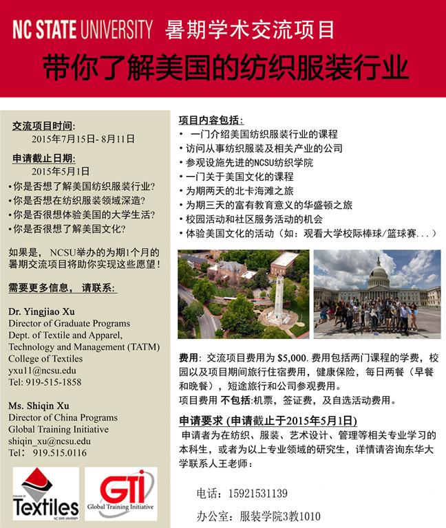 2015北卡莱罗纳州立大学暑期学术交流项目