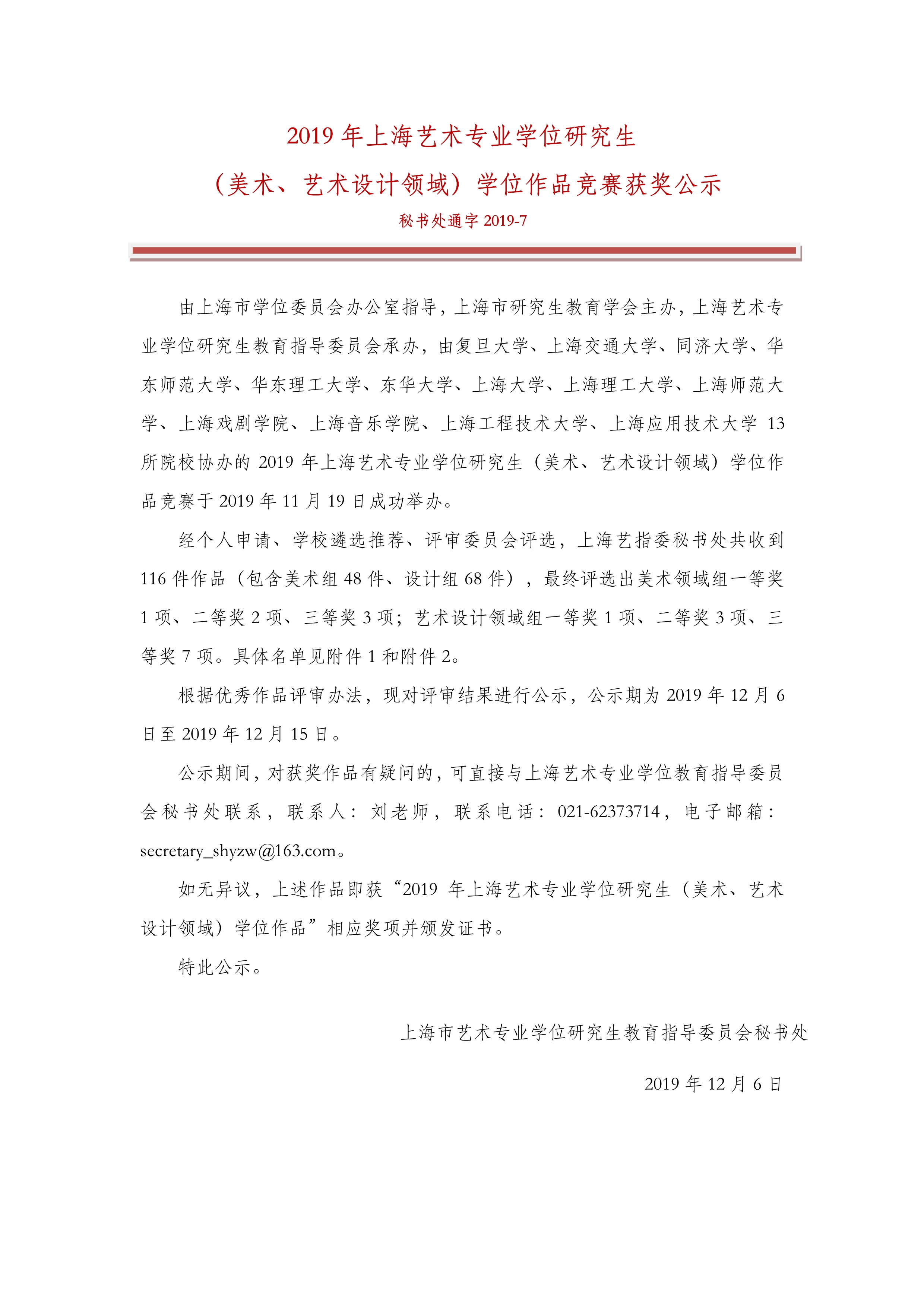 2019年上海艺术专业学位研究生 (美术、艺术设计领域)学位作品竞赛获奖公示